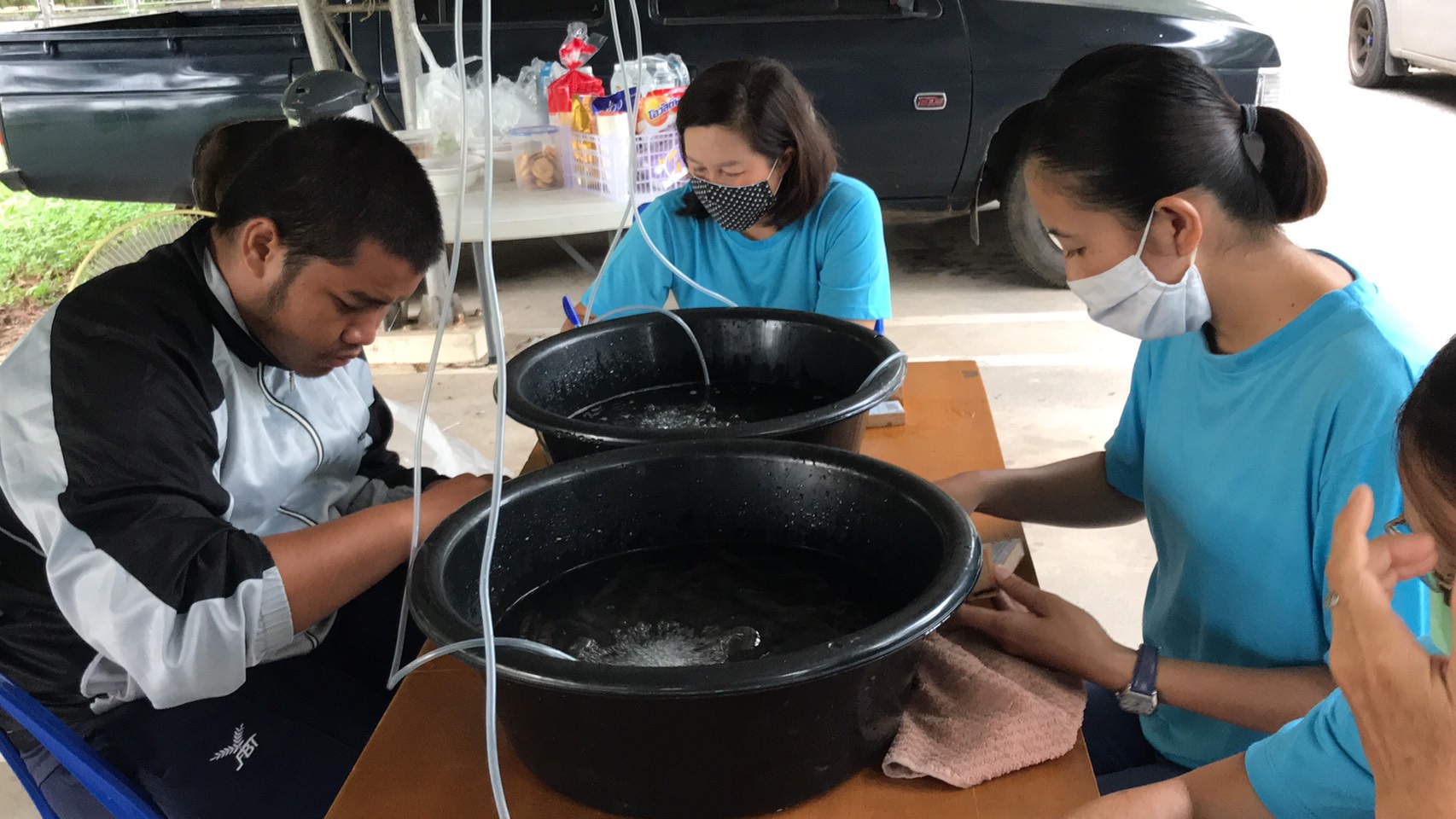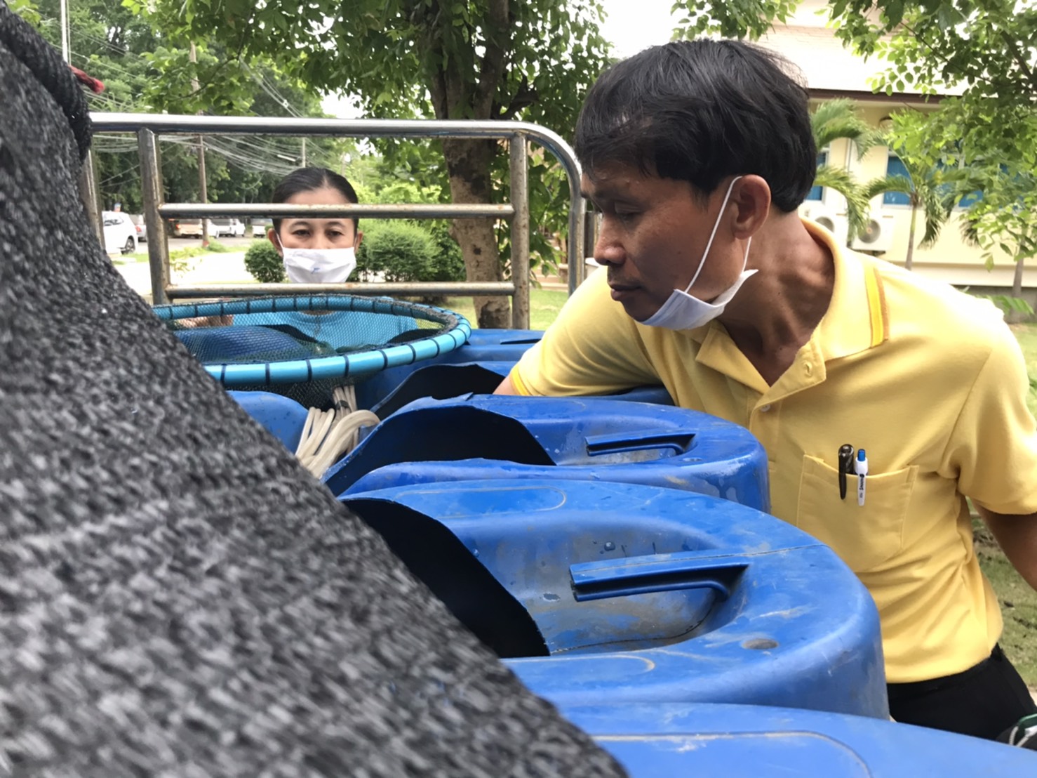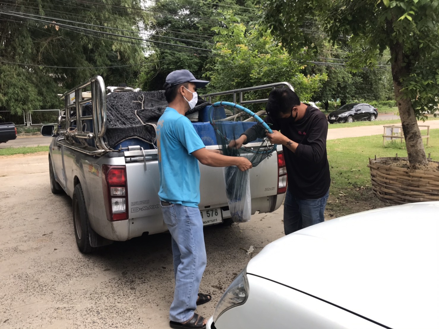 ประมงจังหวัดอุบลราชธานี พร้อมด้วยเจ้าหน้าที่สำนักงานประมงจังหวัดอุบลราชธานี ตรวจรับลูกพันธุ์กุ้งก้ามกราม 5-7 เซนติเมตร ในโครงการสร้างรายได้จากอาชีพประมงในแหล่งน้ำชุมชน ณ บริเวณ สำนักงานประมงจังหวัดอุบลราชธานี