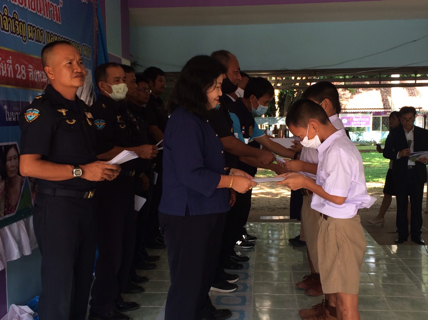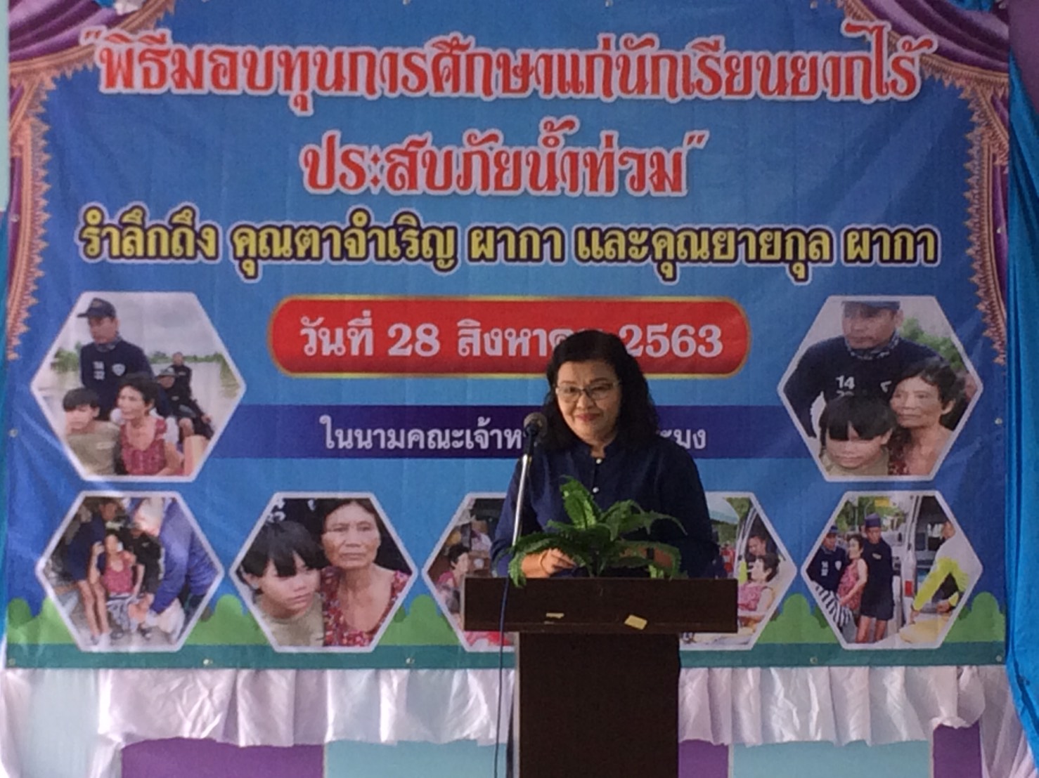 การมอบทุนการศึกษาให้แก่เด็กนักเรียนที่ขาดแคลนทุนทรัพย์ในพื้นที่อำเภอวารินชำราบจำนวน 38 ทุน ที่ประสบปัญหาจากอุทกภัยจากพายุโพดุล และคาจิกิ ปี 2562 ณ หอประชุม กศน. อำเภอวารินชำราบ จังหวัดอุบลราชธานี