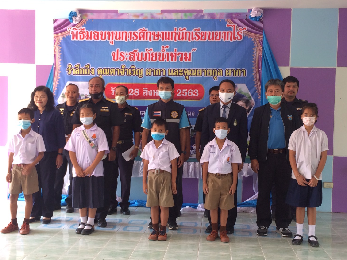 มอบทุนการศึกษาให้แก่เด็กนักเรียนที่ขาดแคลนทุนทรัพย์ในพื้นที่อำเภอวารินชำราบจำนวน 38 ทุนๆละ 2,500 บาท ที่ประสบปัญหาจากอุทกภัยจากพายุโพดุล และคาจิกิ ปี 2562 ณ หอประชุม กศน. อำเภอวารินชำราบ จังหวัดอุบลราชธานี
