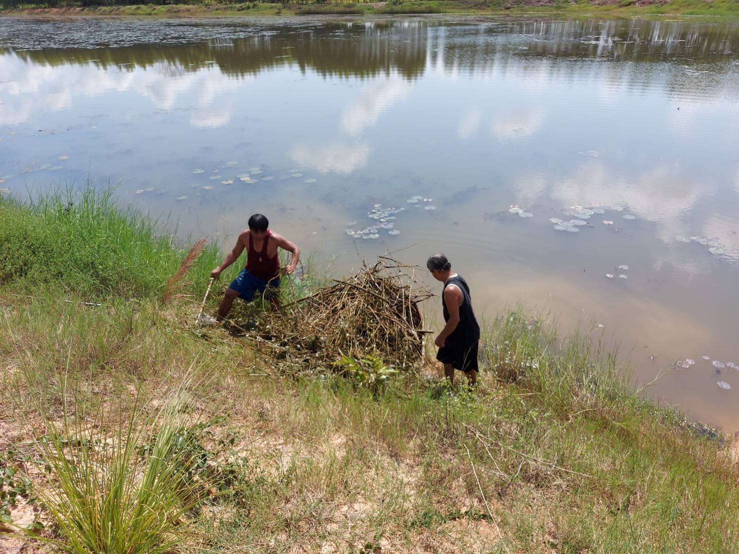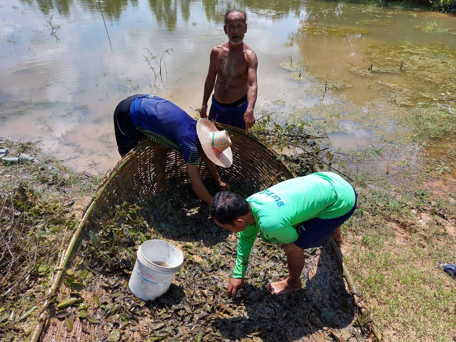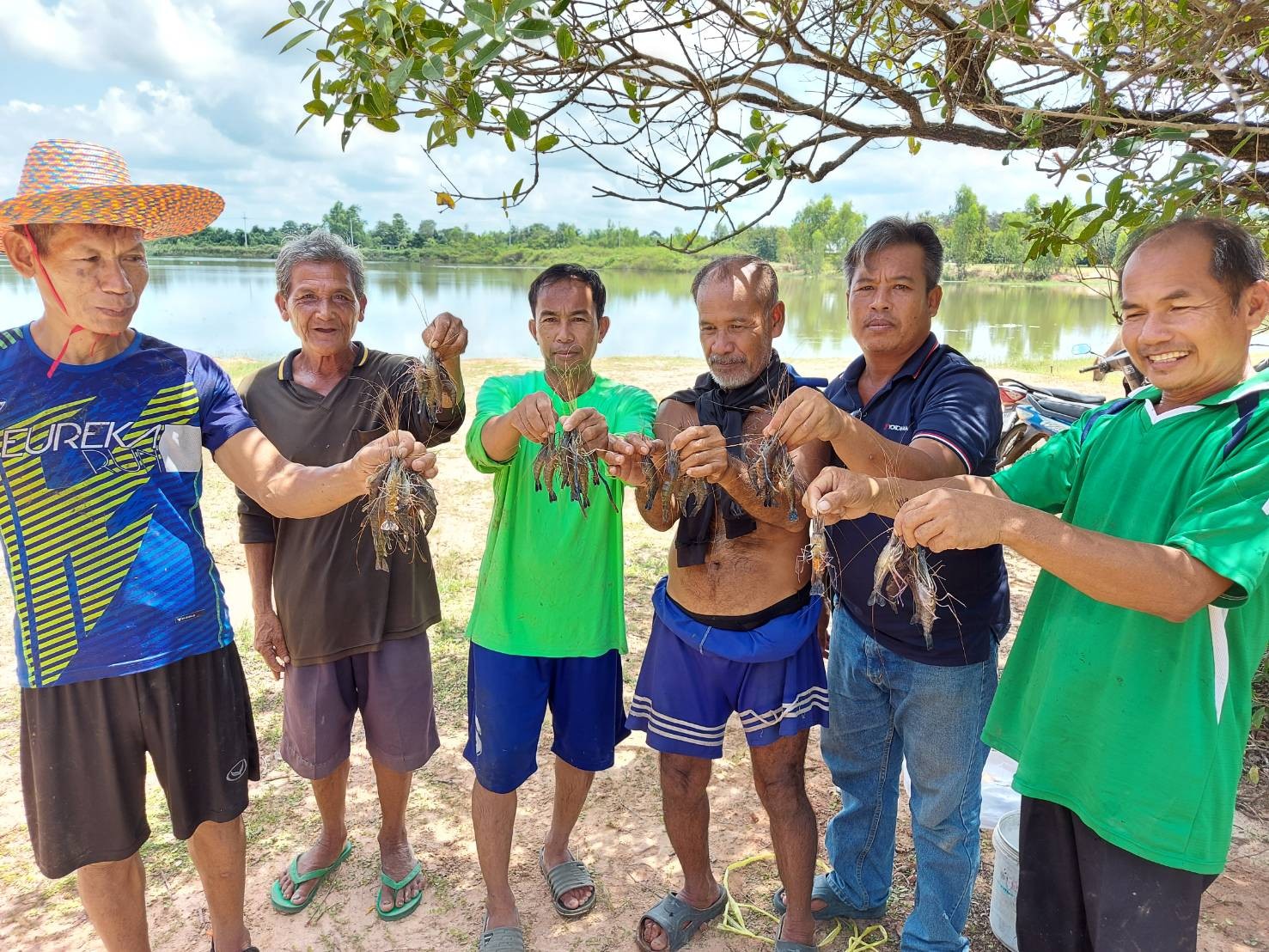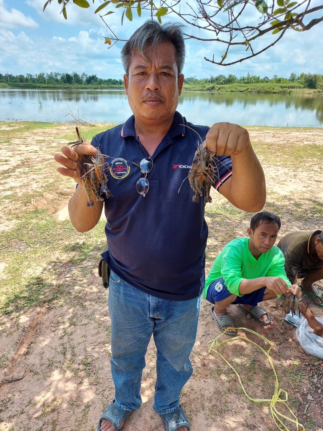ประมงอำเภอดอนมดแดง ติดตามสุ่มชั่งวัดน้ำหนัก กุ้งก้ามกราม หลังจากปล่อยลงสู่แหล่งน้ำ หนองชลประทานร่องกะเดา หนองนาคำภูฮี หนองพอก ต.ท่าเมือง อ.ดอนมดแดง จ.อุบลราชธานี