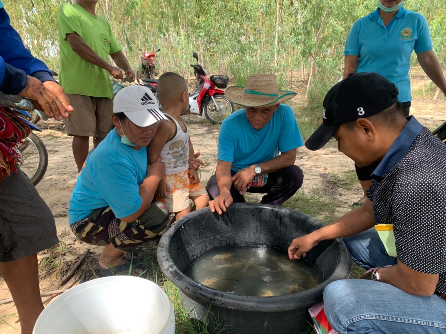 วันที่ 7 กันยายน 2563 เวลา 14.00 น. นายศุภกิตติ์ ใสกระจ่าง ประมงจังหวัดอุบลราชธานี พร้อมด้วยนายวิทยา โกษาผล ประมงอำเภอเขื่องใน ลงพื้นที่ ตรวจตรวจเยี่ยม ติดตามการดำเนินงานตามแผนปฏิบัติการฟื้นฟูเยียวยาผู้ประสบภัยฯ ปี 62 โครงการสร้างรายได้จากอาชีพประมงในแหล่งน้ำชุมชน "สระประมง" บ้านนาโพธิ์ ตำบลค้อทอง อำเภอเขื่องใน จังหวัดอุบลราชธานี  พบว่ากุ้งเจริญเติบโตดีมาก พบว่ามีอาหารธรรมชาติในแหล่งน้ำ ได้แก่กุ้งฝอย หอยขม รวมทั้งมีการให้อาหารสมทบด้วย กุ้งก้ามกรามที่สุ่มได้มีน้ำหนัก 25 ตัว ต่อกิโลกรัม  ในการนี้ประมงจังหวัดได้ให้คำแนะนำแก่คณะะกรรมการแหล่งน้ำในการจับผลผลิต และจำหน่ายผลผลิตเพื่อหารายได้เข้าชุมชนต่อไป ทั้งนี้ได้อุดหนุด ซื้อผลผลิตกุ้งในแหล่งน้ำ 1 กิโลกรัม เป็นเงิน 500 บาท เพื่อเป็นขวัญและกำลังใจแก่คณะกรรมการแหล่งน้ำฯ