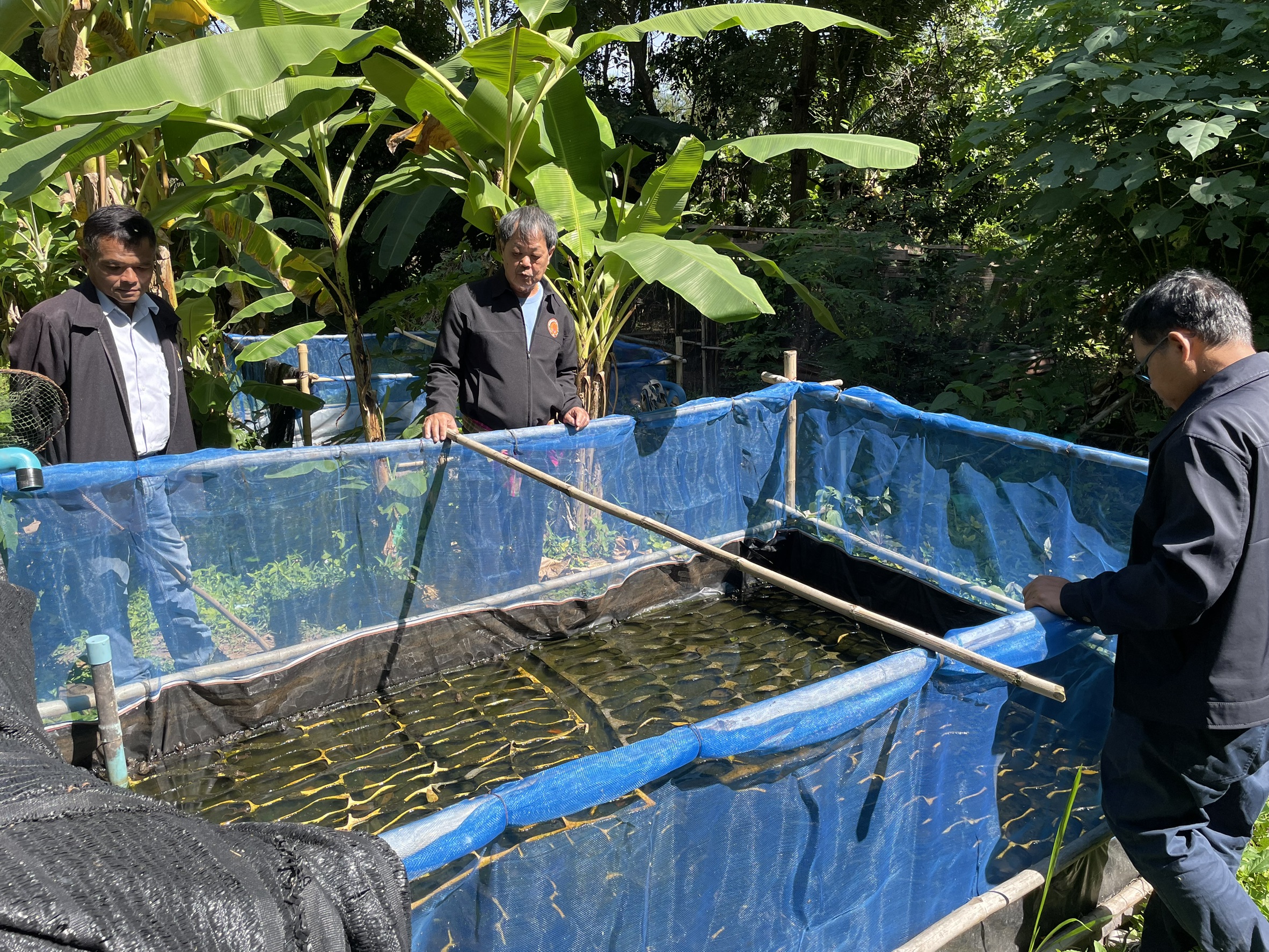 วันที่ 28 พฤศจิกายน 2568 นายบุญส่งพานชัยภูมิ หัวหน้ากลุ่มพัฒนาและส่งเสริมอาชีพการประมง นายนนท์ปวิธ ออกแดง นักวิชาการประมงปฏิบัติการ นายปฏิพัทธ์ ตอพรหม นักวิชาการประมง สำนักงานประมงจังหวัดชัยภูมิ ร่วมกับนางสาวศิริพร ชอบเจริญ ประมงอำเภอหนองบัวแดง ลงพื้นที่เตรียมความพร้อมเกษตรกรโครงการ ยกระดับคุณภาพมาตรฐานสินค้าเกษตร กิจกรรมพัฒนาคุณภาพสินค้าประมงสู่ มกษ.7436, 7438 ตำบลหนองบัวแดง ตำบลหนองแวง อำเภอหนองบัวแดง  จังหวัดชัยภูมิ พร้อมเยี่ยมศูนย์ ศพก.เครือข่ายด้านประมง รายนายบุญชิต สมัตถะ ตำบลหนองแวง และรายนายสง่า ปัตตะเน ตำบลหนองบัวแดง อำเภอหนองบัวแดง จังหวัดชัยภูมิ