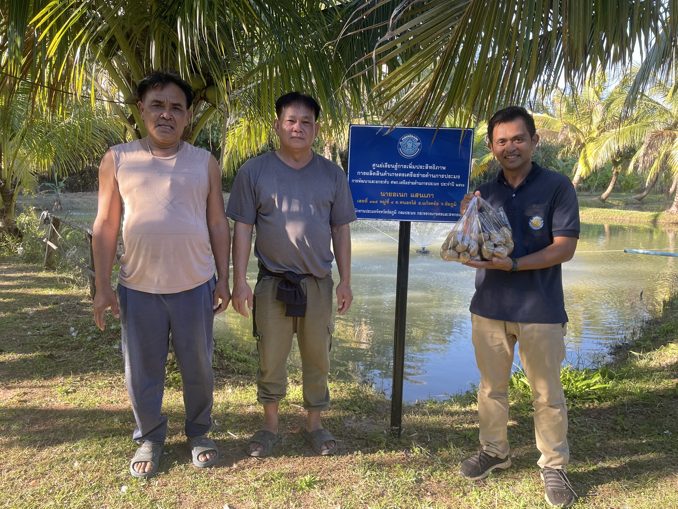 วันที่ 2 ธันวาคม 2568 นายปฏิพัทธ์ ตอพรหม นักวิชาการประมง กลุ่มพัฒนาและส่งเสริมอาชีพการประมง สำนักงานประมงจังหวัดชัยภูมิ ลงพื้นที่เตรียมความพร้อมเกษตรกรโครงการยกระดับคุณภาพมาตรฐานสินค้าเกษตร กิจกรรมพัฒนาคุณภาพสินค้าประมงสู่มาตรฐาน มกษ.7436 (มาตรฐานสินค้าเกษตรว่าด้วยการปฏิบัติทางการเพาะเลี้ยงสัตว์น้ำที่ดีสำหรับฟาร์มเพื่อการบริโภค) ประจำปีงบประมาณ 2569 ตำบลหนองไผ่ อำเภอแก้งคร้อ จังหวัดชัยภูมิ พร้อมตรวจเยี่ยมฟาร์มนายอเนก แสนเภา เจ้าของศูนย์ ศพก.เครือข่ายด้านประมง บ้านหนองแก ตำบลหนองไผ่ อำเภอแก้งคร้อ จังหวัดชัยภูมิ