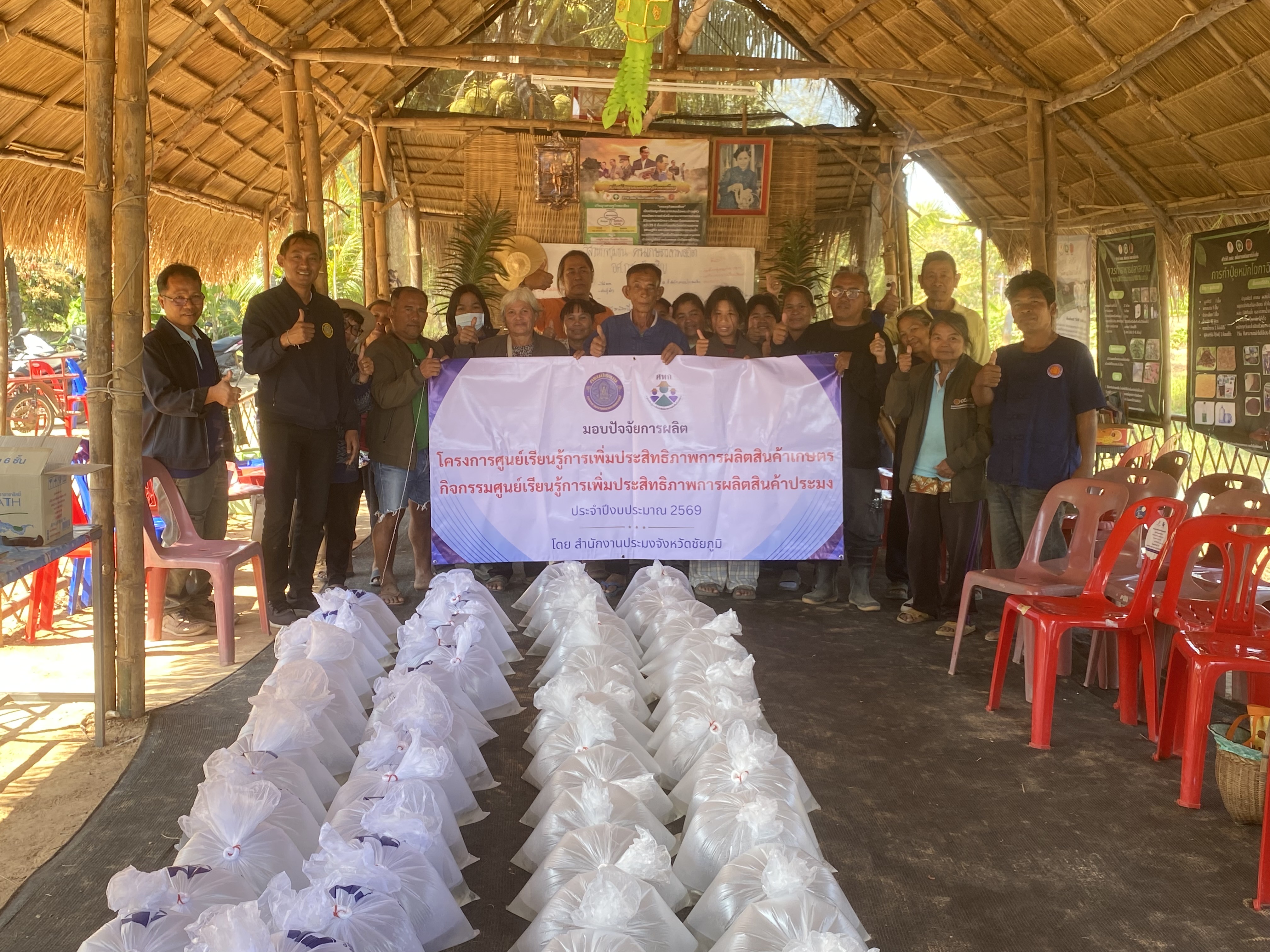 มอบปัจจัยการผลิต โครงการศูนย์เรียนรู้ฯ กิจกรรมศูนย์เรียนรู้การเพิ่มประสิทธิภาพการผลิตสินค้าประมง ในพื้นที่ อ.บำเหน็จณรงค์ อ.เทพสถิต จ.ชัยภูมิ