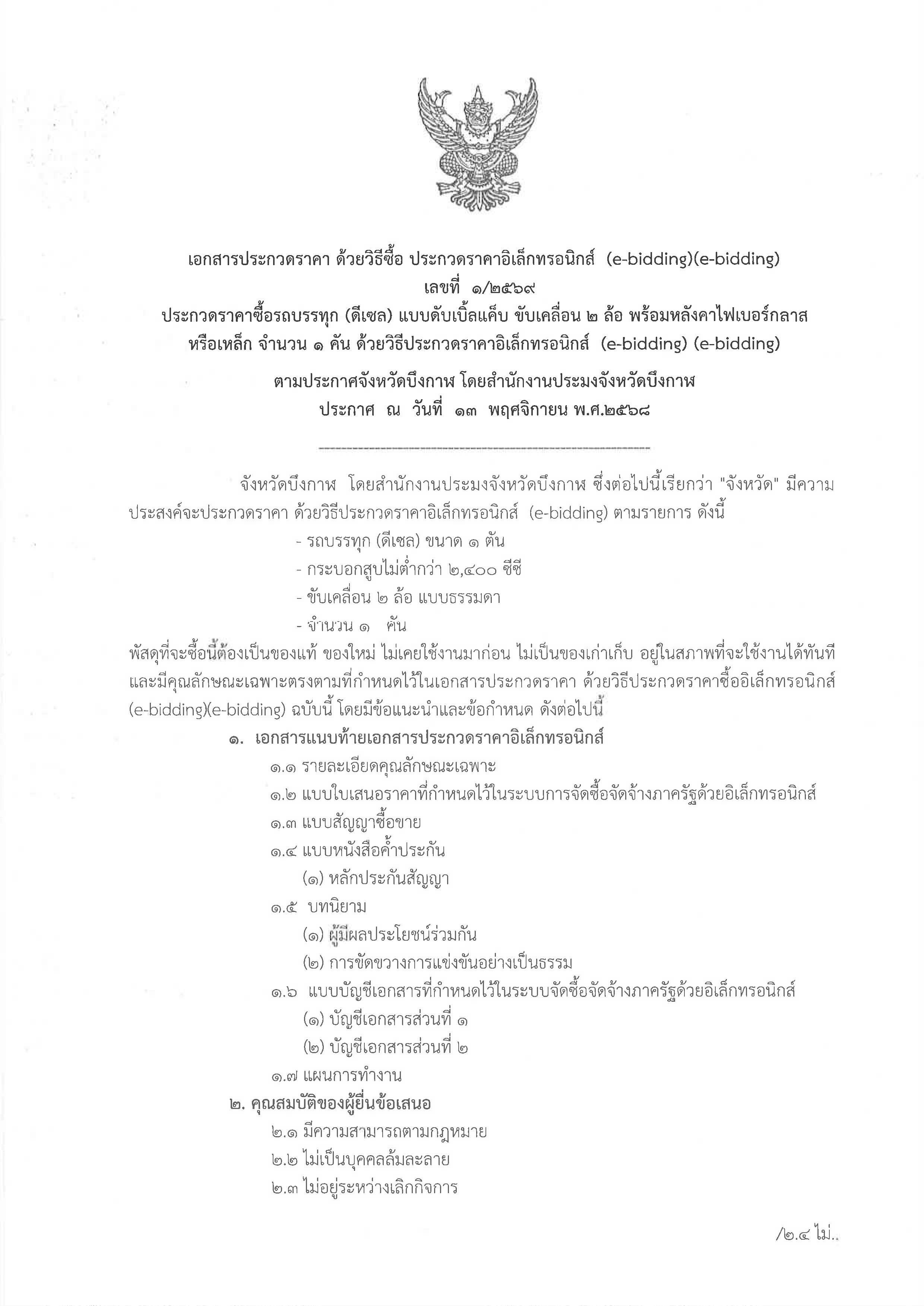 ประกวดราคาซื้อรถบรรทุก (ดีเซล) แบบดับเบิ้ลแค็บ ขับเคลื่อน 2 ล้อ พร้อมหลังคาไฟเบอร์กลาสหรือเหล็ก จำนวน 1 คัน ด้วยวิธีประกวดราคาอิเล็กทรอนิกส์ (e-bidding)
