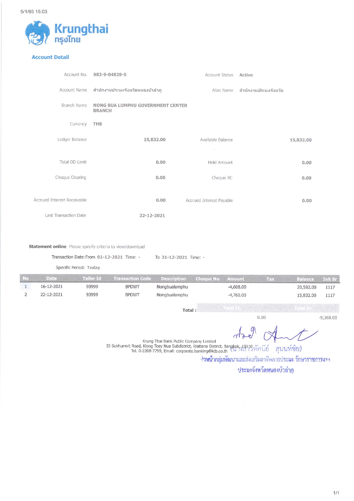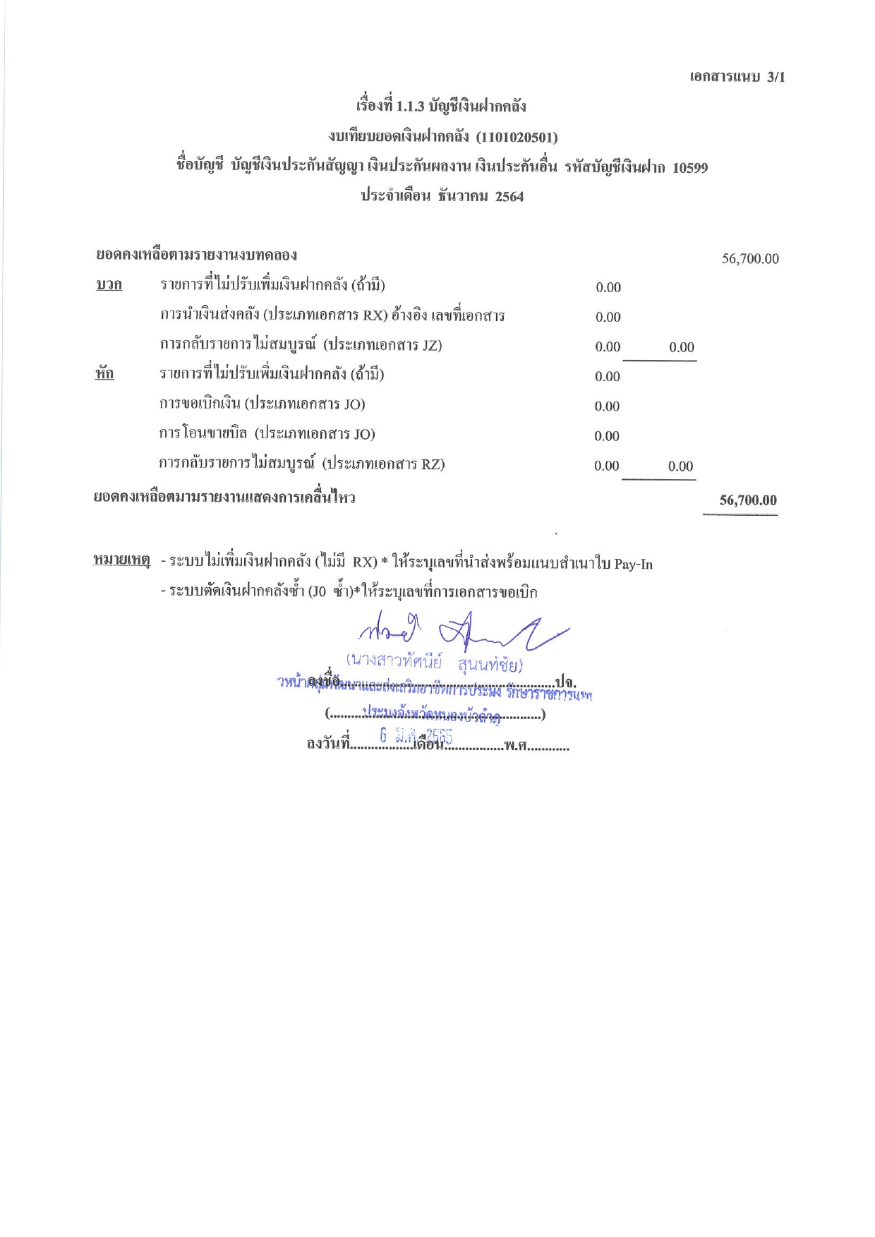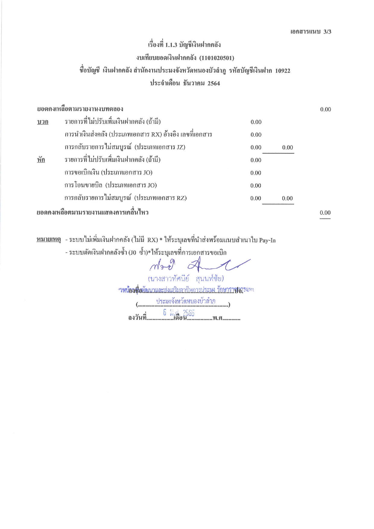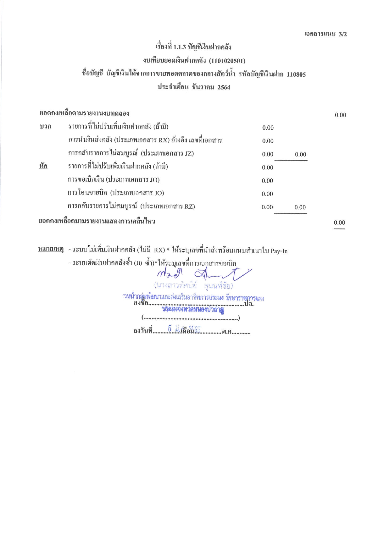 การเปิดเผยแสดงรายละเอียดประกอบรายการบัญชีที่สำคัญประกอบงบทดลองประจำเดือน ธันวาคม  2564..คลิก