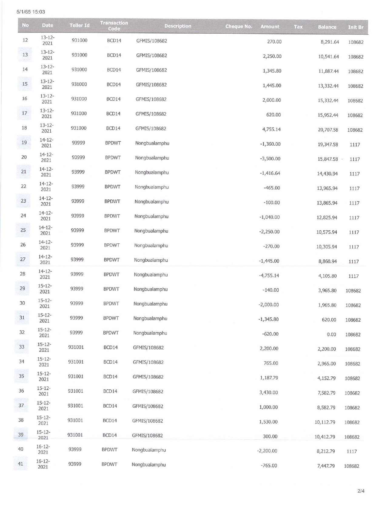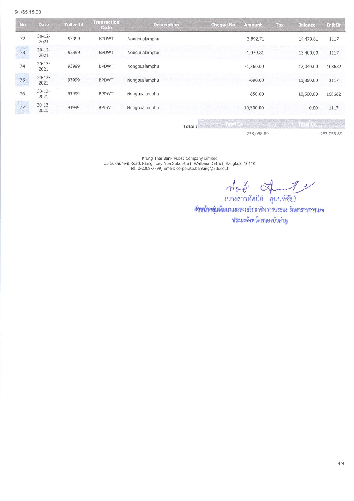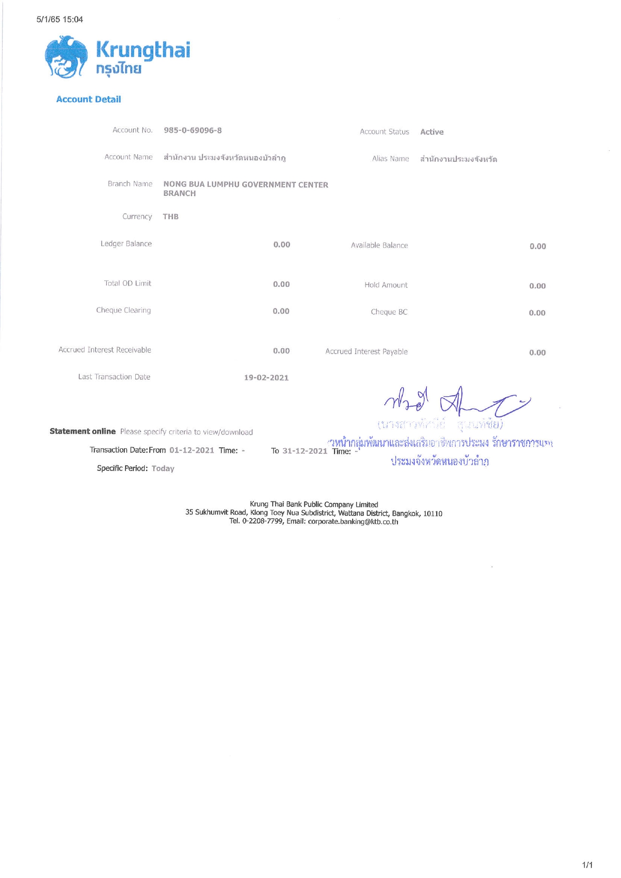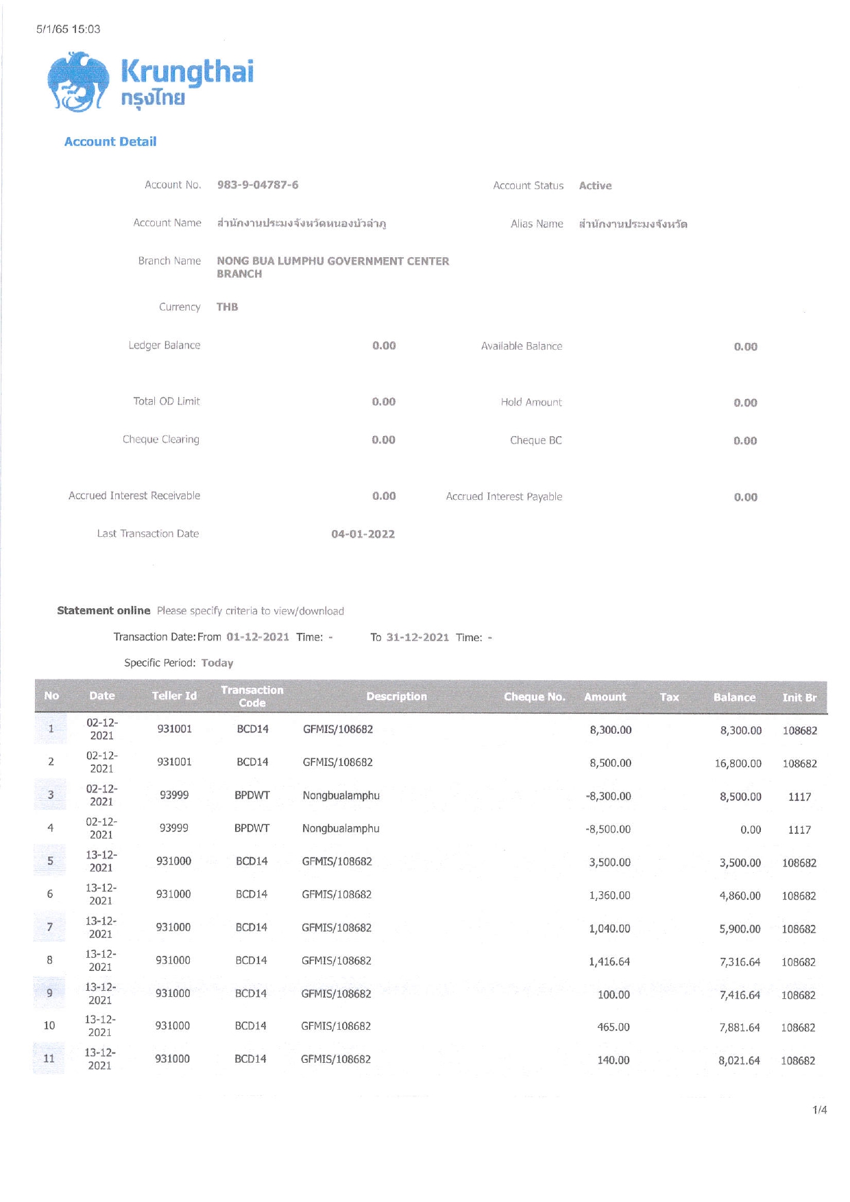 การเปิดเผยแสดงรายละเอียดประกอบรายการบัญชีที่สำคัญประกอบงบทดลองประจำเดือน ธันวาคม  2564..คลิก