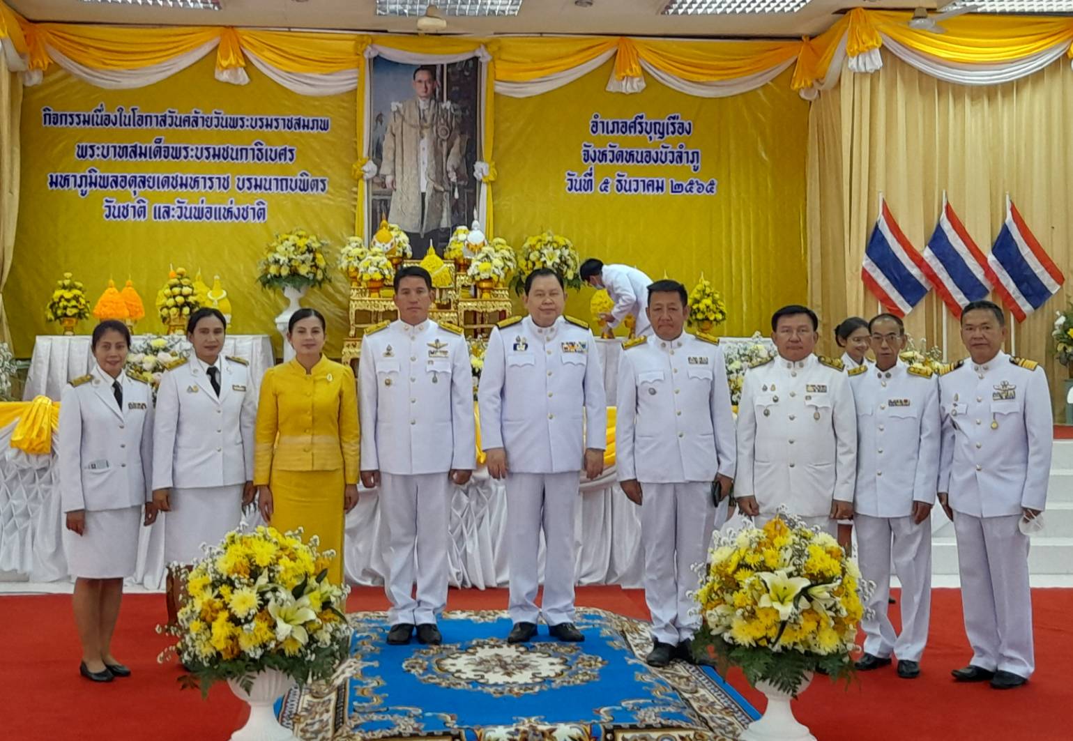 เวลา 06.30 น. ร่วมพิธีทำบุญตักบาตรถวายเป็นพระราชกุศล เนื่องในวันคลายวันพระบรมราชสมภพ พระบาทสมเด็จพระบรมชนกาธิเบศร มหาภูมิพลอดุลยเดชมหาราช บรมนาถบพิตร วันชาติ และวันพ่อแห่งชาติ ณ วัดสว่างอารมณ์ ตำบลเมืองใหม่ อำเภอศรีบุญเรือง จังหวัดหนองบัวลำภู