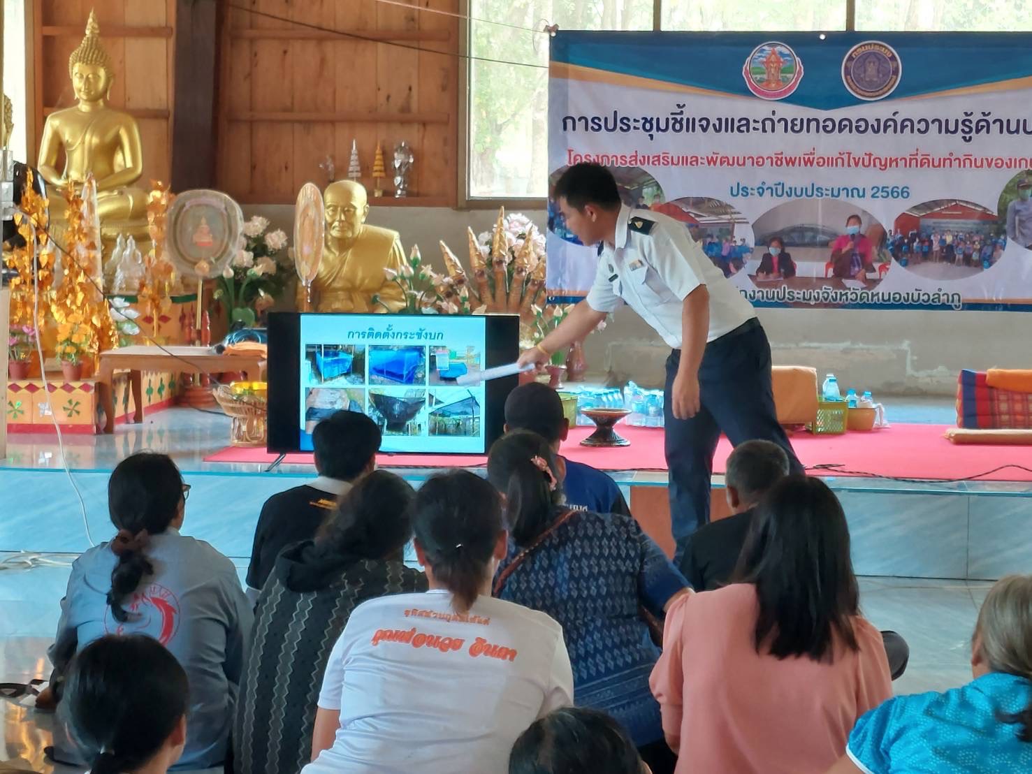 วันที่ 15 พฤษภาคม 2566 นายสมมิตร ธรรมมิยะ ประมงอำเภอสุวรรณคูหาจัดประชุมชี้แจงและถ่ายทอดองค์ความรู้ด้านการประมง แก่เกษตรกรที่เข้าร่วมโครงการส่งเสริมและพัฒนาอาชีพเพื่อแก้ไขปัญหาที่ดินทำกินของเกษตรกร ประจำปีงบประมาณ 2566