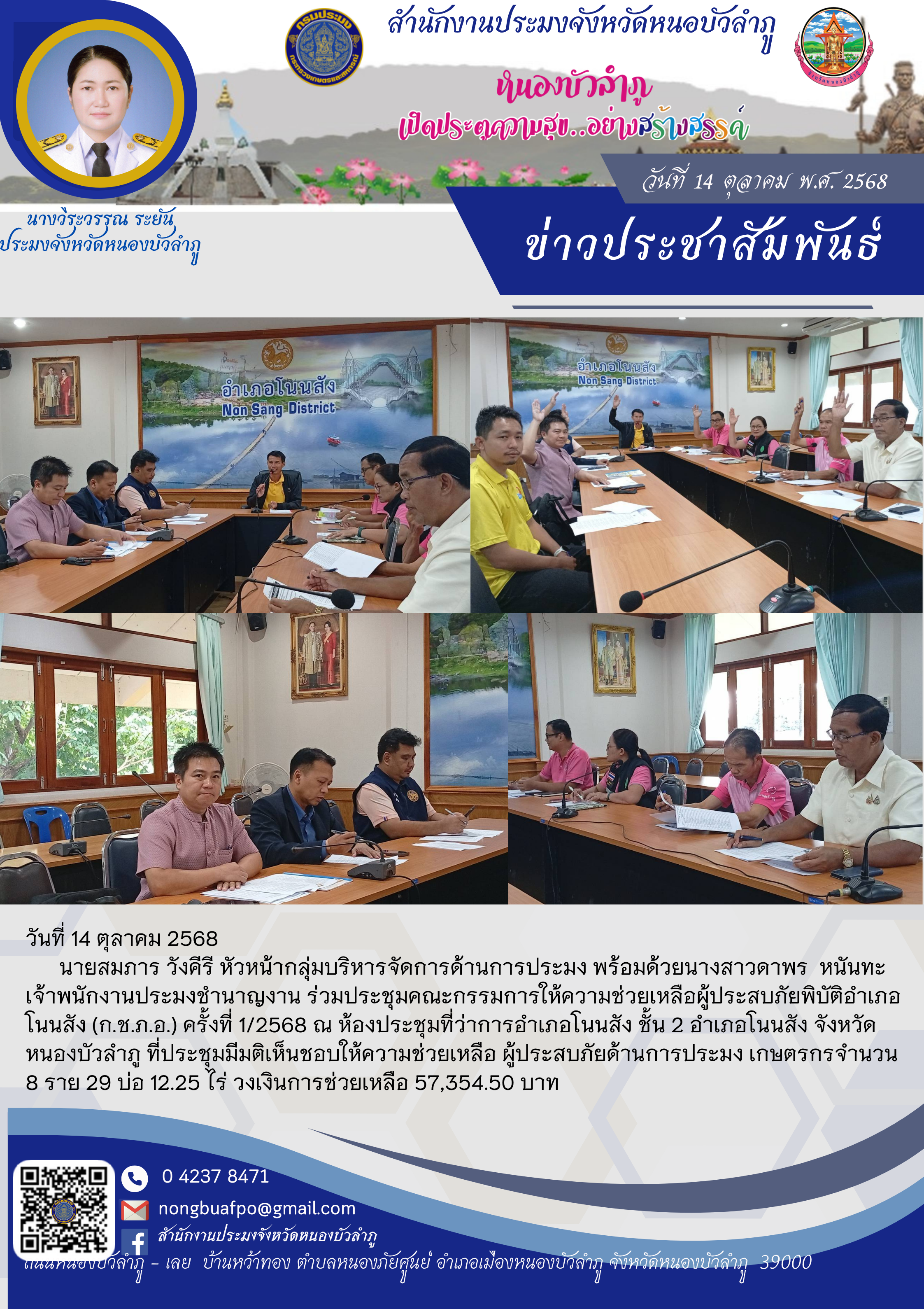 ร่วมประชุมคณะกรรมการให้ความช่วยเหลือผู้ประสบภัยพิบัติอำเภอโนนสัง (ก.ช.ภ.อ.) ครั้งที่ 1/2568