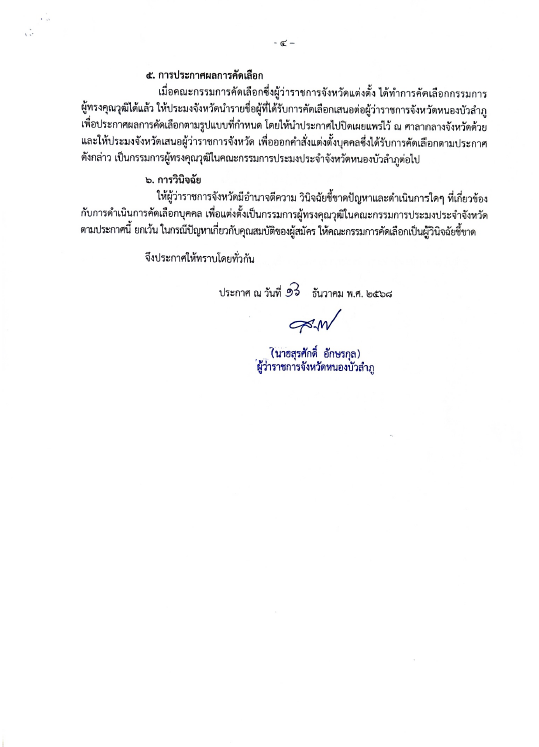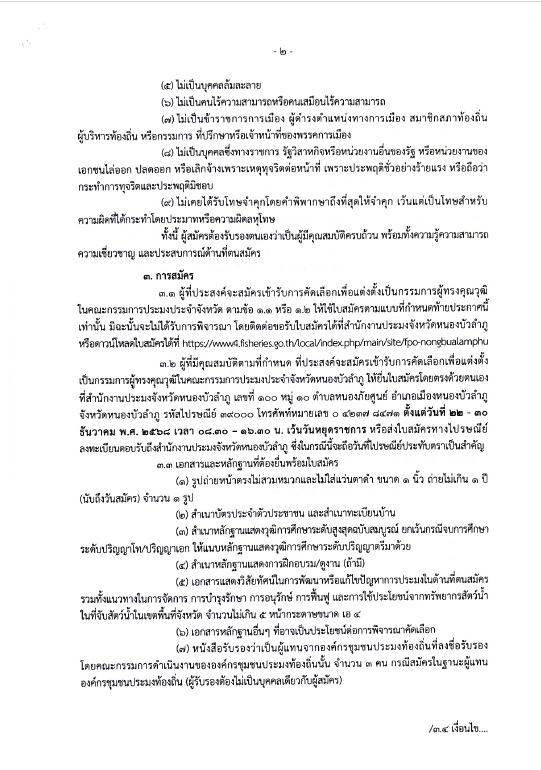 ประกาศจังหวัดหนองบัวลำภู เรื่อง การรับสมัครบุคคลเข้ารับการคัดเลือกเพื่อแต่งตั้งเป็นกรรมการผู้ทรงคุณวุฒิในคณะกรรมการประมงประจำจังหวัดหนองบัวลำภู