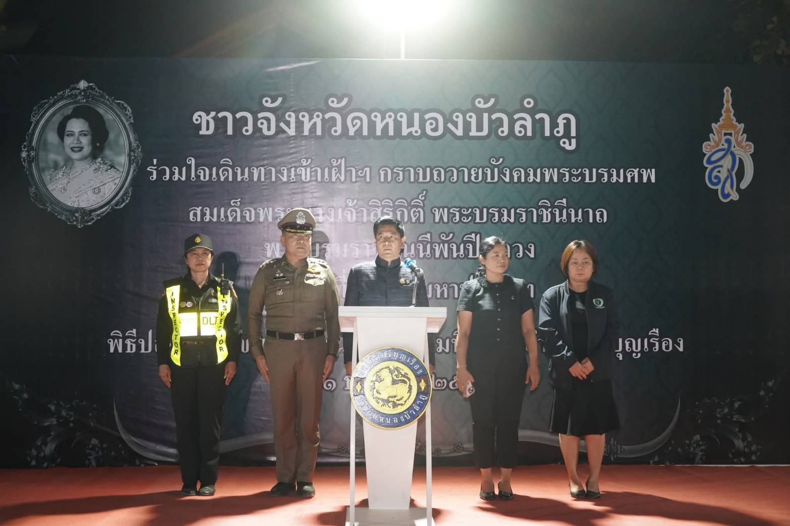 วมในพิธีปล่อยขบวนรถเดินทางเพื่อนำพสกนิกรชาวอำเภอศรีบุญเรืองและอำเภอโนนสัง จังหวัดหนองบัวลำภู เดินทางไปเข้าเฝ้าฯ กราบถวายบังคมพระบรมศพ สมเด็จพระนางเจ้าสิริกิติ์ พระบรมราชินีนาถ พระบรมราชชนนีพันปีหลวง