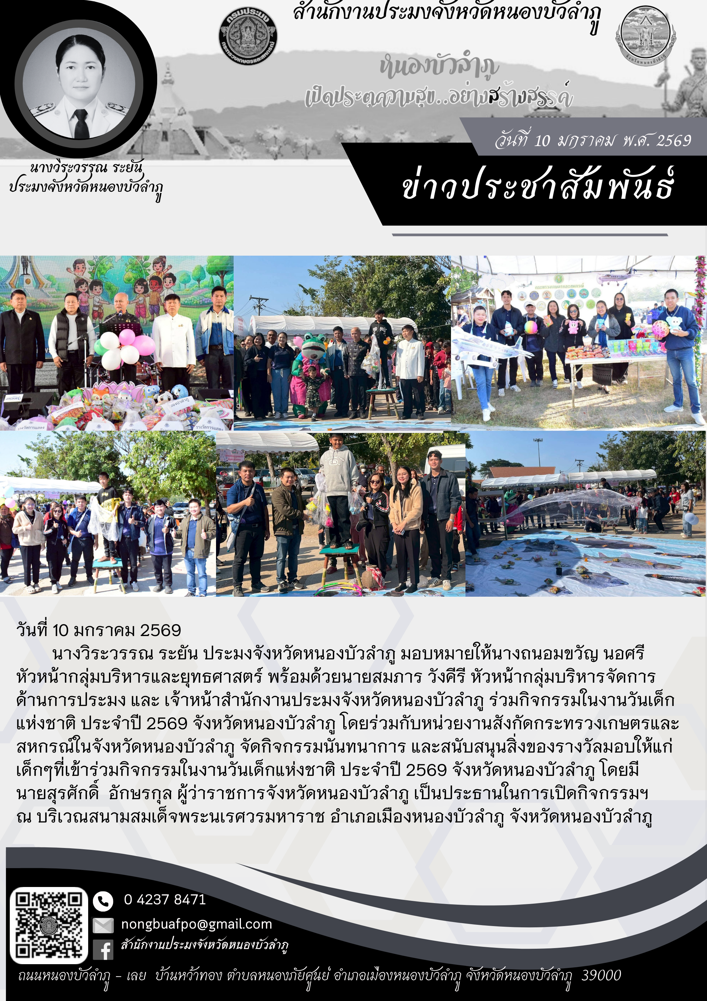 ร่วมกิจกรรมในงานวันเด็กแห่งชาติ ประจำปี 2569 จังหวัดหนองบัวลำภู