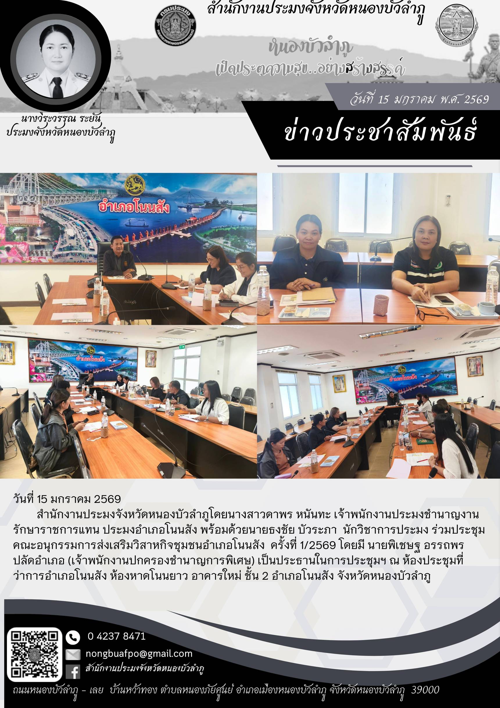 ร่วมประชุมคณะอนุกรรมการส่งเสริมวิสาหกิจชุมชนอำเภอโนนสัง ครั้งที่ 1/2569..คลิก