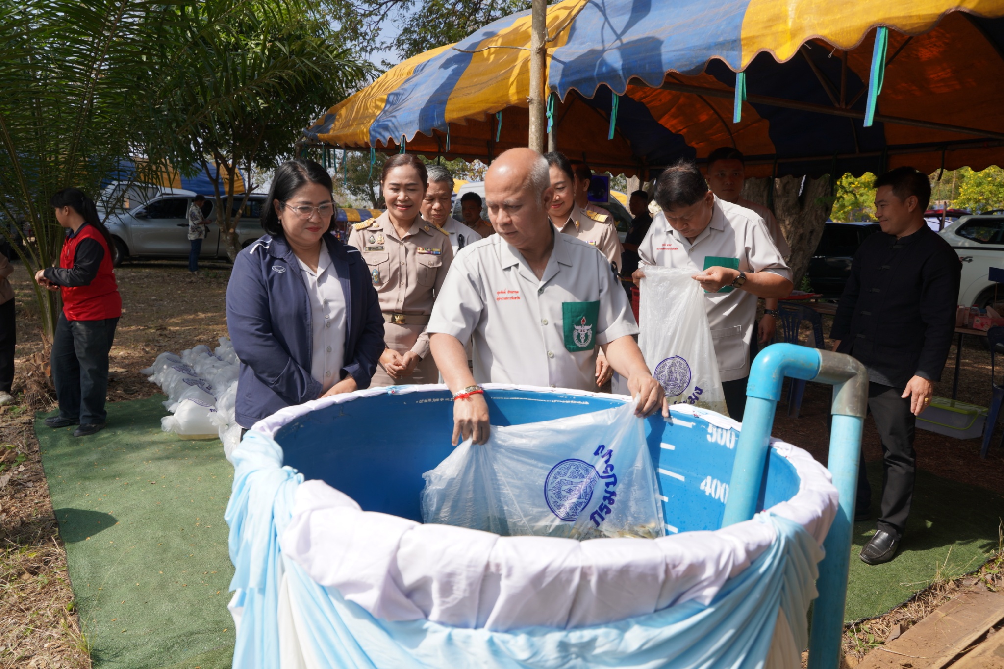 นางวิระวรรณ ระยัน ประมงจังหวัดหนองบัวลำภู พร้อมด้วย นายสมภาร วังคีรี หัวหน้ากลุ่มบริหารจัดการด้านการประมง นายเมธา ตาลเหล็ก ประมงอำเภอนากลาง และเจ้าหน้าที่สำนักงานประมงจังหวัดหนองบัวลำภู ร่วมออกหน่วยแพทย์เคลื่อนที่ พอ.สว. และโครงการหน่วยบำบัดทุกข์ บำรุงสุข สร้างรอยยิ้มให้ประชาชน โดยมีบริการให้คำปรึกษาในการเพาะเลี้ยงสัตว์น้ำ และแจกพันธุ์ปลาจำนวน 50 ถุง โดยมีนายสุรศักดิ์ อักษรกุล ผู้ว่าราชการจังหวัดหนองบัวลำภู เป็นประธานในพิธีฯ ณ โรงเรียนบ้านส้มโฮง หมู่ที่ 5 ตำบลนาแก อำเภอนาวัง จังหวัดหนองบัวลำภู