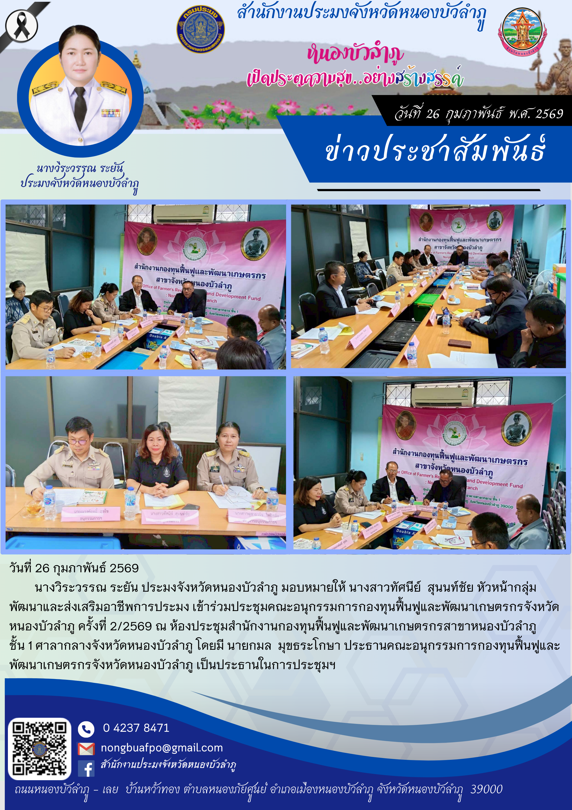 NEW เข้าร่วมประชุมคณะอนุกรรมการกองทุนฟื้นฟูและพัฒนาเกษตรกรจังหวัดหนองบัวลำภู ครั้งที่ 2/2569..คลิก