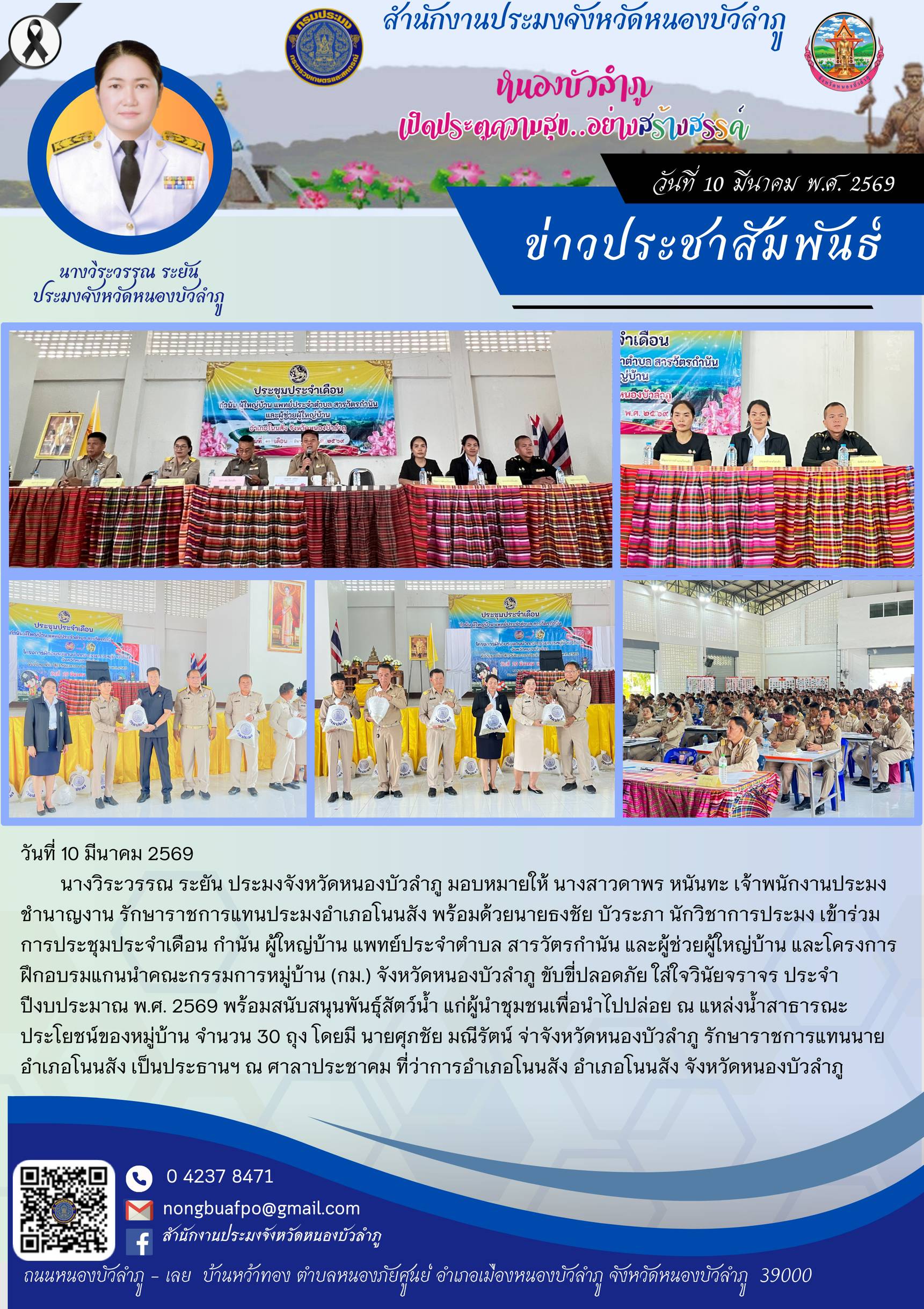 NEW เข้าร่วมการประชุมประจำเดือน กำนัน ผู้ใหญ่บ้าน แพทย์ประจำตำบล สารวัตรกำนัน และผู้ช่วยผู้ใหญ่บ้าน และโครงการฝึกอบรมแกนนำคณะกรรมการหมู่บ้าน (กม.) จังหวัดหนองบัวลำภู ขับขี่ปลอดภัย ใส่ใจวินัยจราจร ประจำปีงบประมาณ พ.ศ. 2569..คลิก