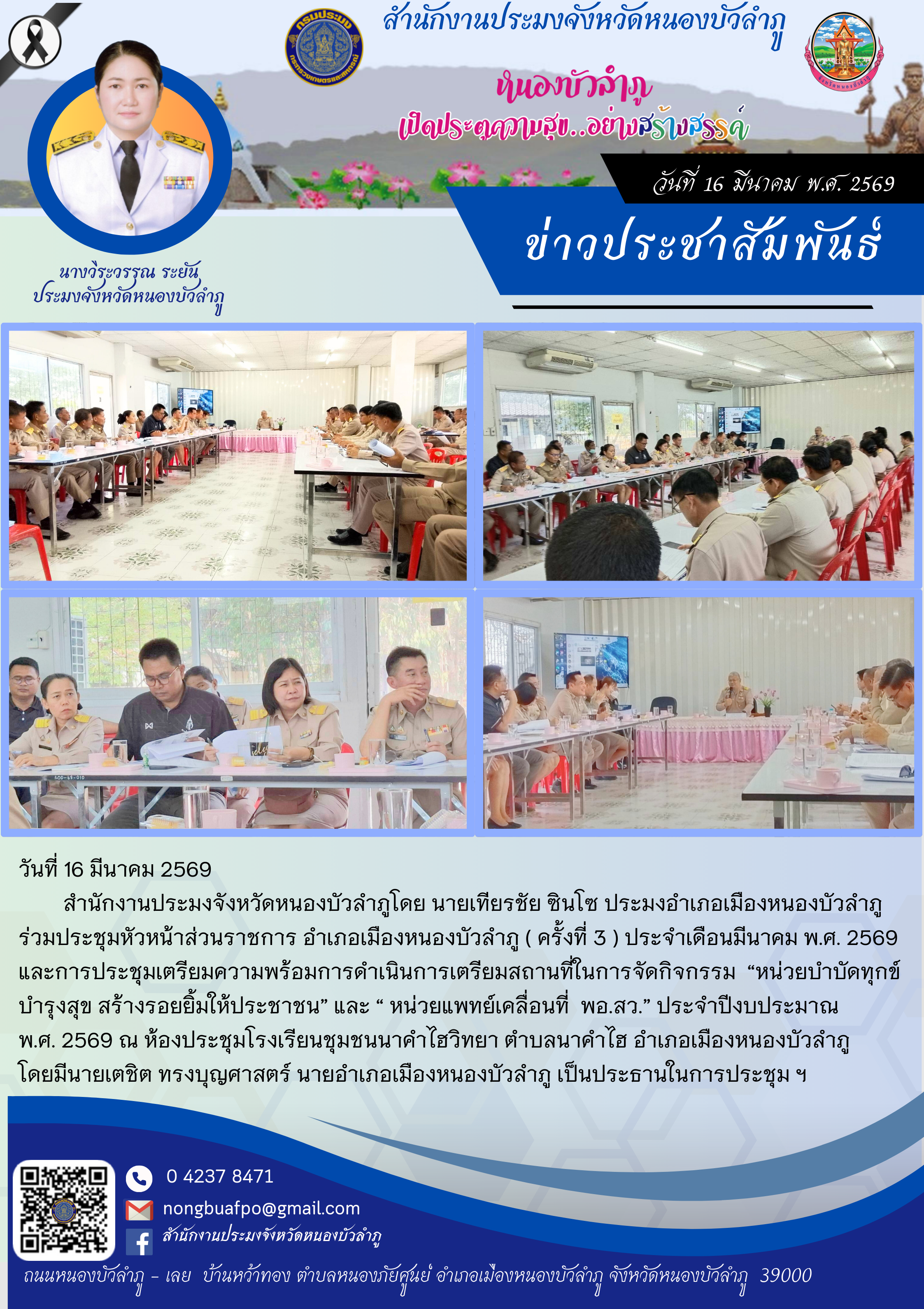 NEW ร่วมประชุมหัวหน้าส่วนราชการ อำเภอเมืองหนองบัวลำภู ( ครั้งที่ 3 ) ประจำเดือนมีนาคม พ.ศ. 2569..คลิก