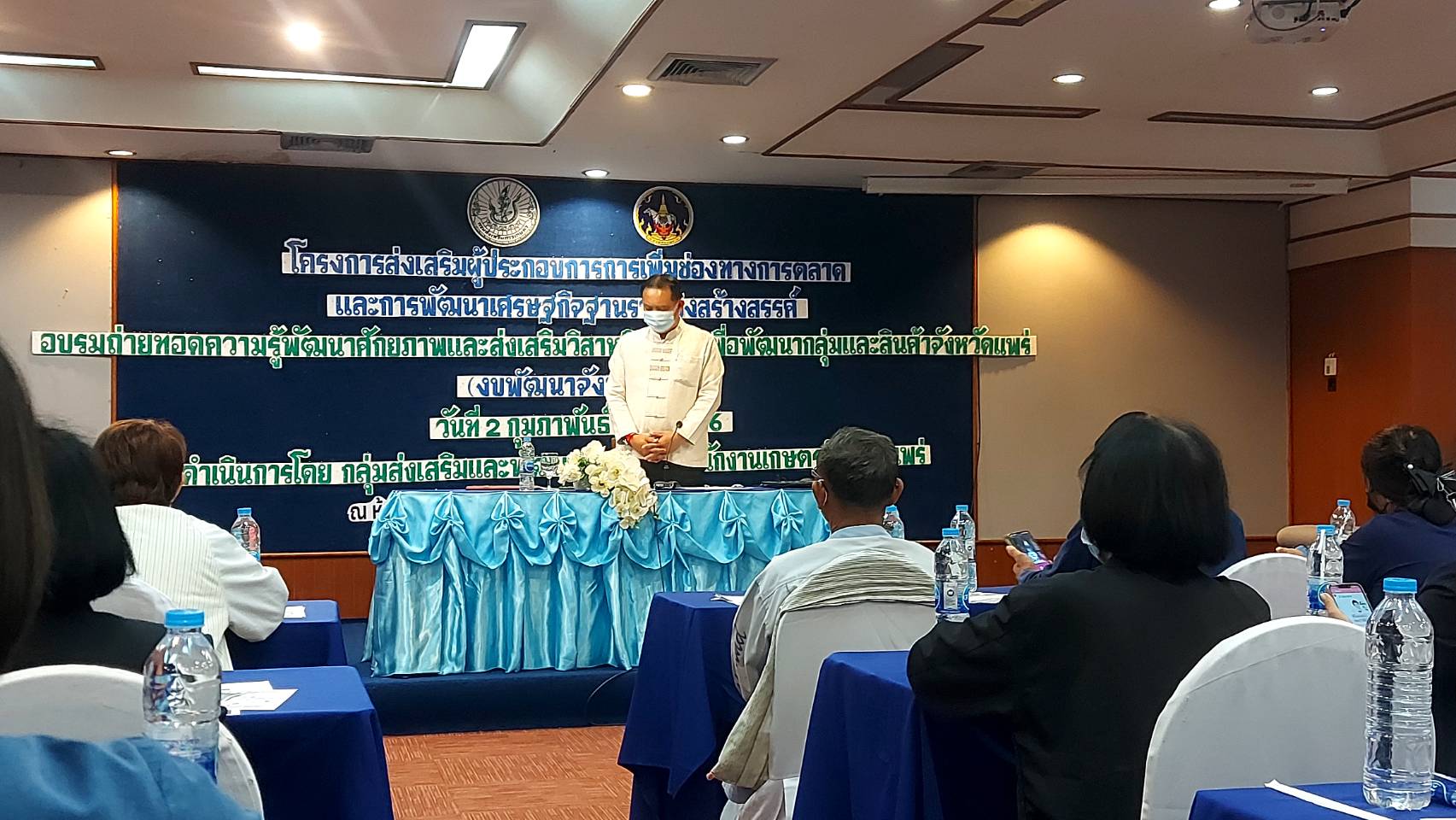 นายสังวาลย์ ดูระยับ ประมงจังหวัดแพร่ มอบหมายให้ นายไกรเดช โลกคำลือ หัวหน้ากลุ่มพัฒนาและส่งเสริมอาชีพการประมง เข้าร่วมโครงการส่งเสริมผู้ประกอบการการเพิ่มช่องทางการตลาดและการพัฒนาเศรษฐกิจฐานรากอย่างสร้างสรรค์ อบรมถ่ายทอดความรู้พัฒนาศักยภาพและส่งเสริมวิสาหกิจชุมชนเพื่อพัฒนากลุ่มและสินค้าจังหวัดแพร่ ณ โรงแรมแพร่นครา อำเภอเมืองแพร่ จังหวัดแพร่