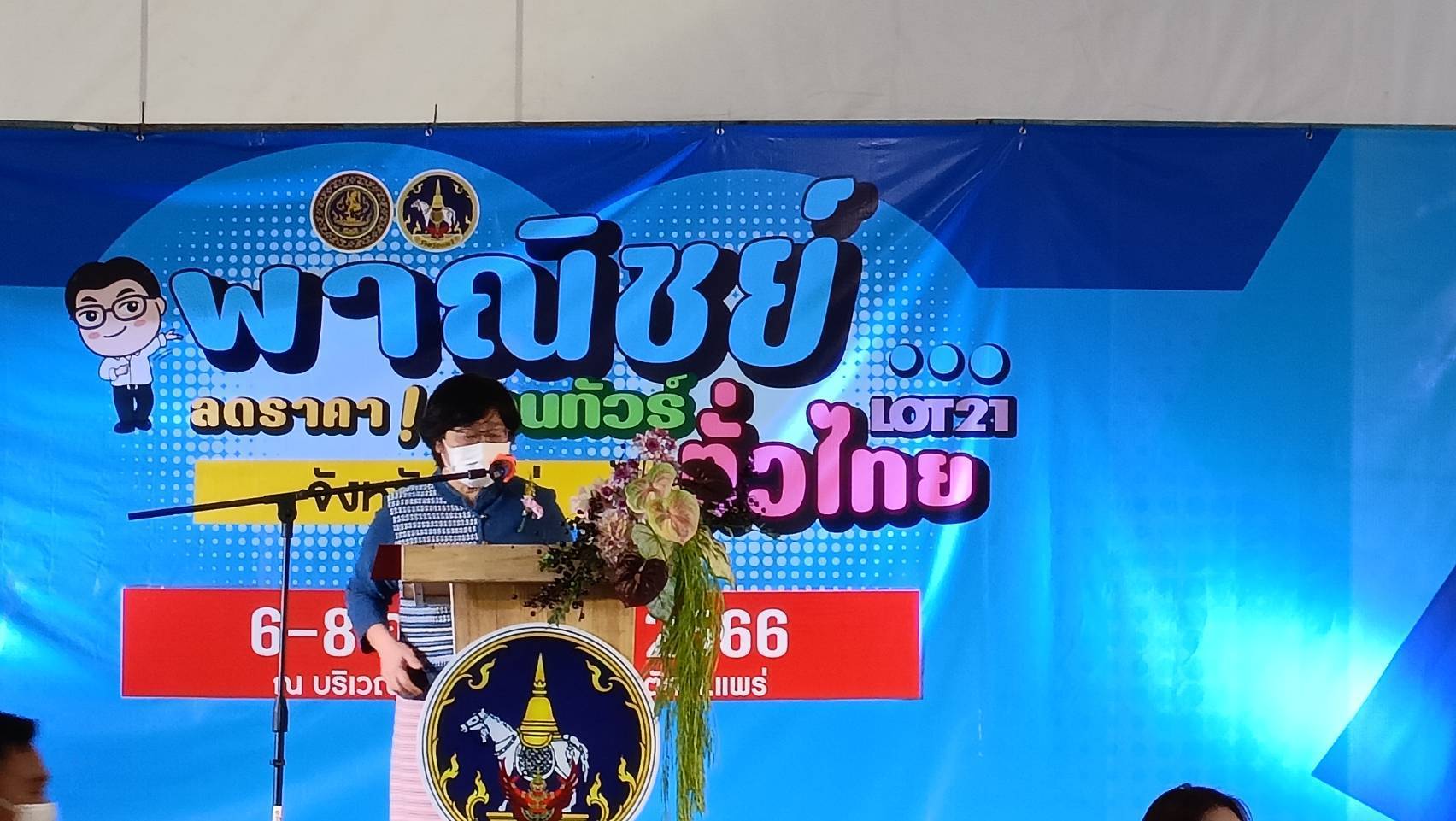 นายสังวาลย์ ดูระยับ ประมงจังหวัดแพร่ มอบหมายให้ นางสาววาริน พาลีวล หัวหน้ากลุ่มบริหารและยุทธศาสตร์ เข้าร่วมพิธีเปิดงานโครงการพาณิชย์...ลดราคา! ออนทัวร์ ทั่วไทย 6-8 กุมภาพันธ์2566 ที่บริเวณลานจอดรถด้านหน้าห้างสรรพสินค้าโลตัส สาขาแพร่ ตำบลทุ่งกวาว อำเภอเมือง จังหวัดแพร่ โดยมีนางสาวนิติยา พงษ์พานิช รองผู้ว่าราชการจังหวัดแพร่เป็นประธานเปิดโครงการฯ ซึ่งสำนักงานพาณิชย์จังหวัดแพร่จัดขึ้น โดยนำสินค้าอุปโภค-บริโภค ที่จำเป็นต่อการครองชีพในราคาประหยัดจากสมาคม ผู้ค้าส่ง Supplier กลุ่มเกษตรกรและสมาคมผู้ผลิตโดยตรง วิสาหกิจชุมชน SMEs Statup ทั้งในพื้นที่และนอกพื้นที่ มาจำหน่ายแก่ประชาชน
