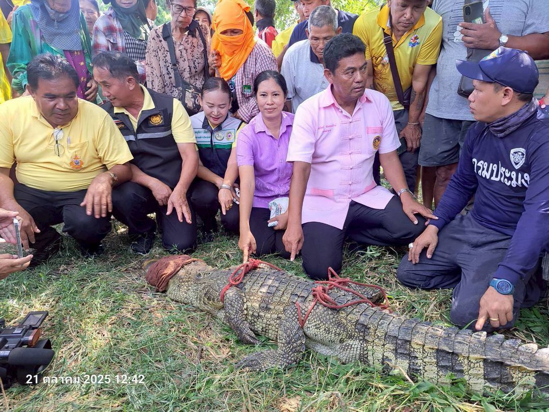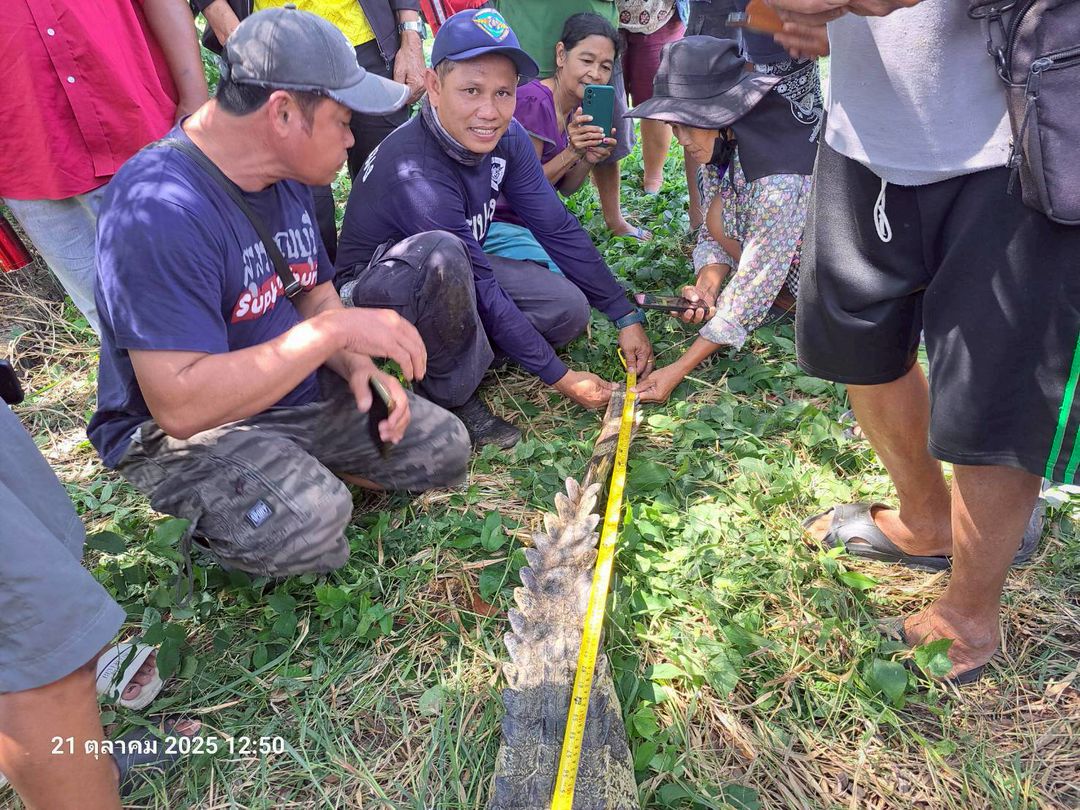 วันอังคารที่ 21 ตุลาคม 2568 นายวชิระ กว้างขวาง ประมงจังหวัดนครสวรรค์ มอบหมายให้ นางสาวจารุวรรณ ใบกุหลาบ ประมงอำเภอท่าตะโก ร่วมกับ หน่วยป้องกันและปราบปรามบึงบอระเพ็ด เข้าตรวจสอบพื้นที่ หมู่บ้านเนินสำราญ หมู่ที่ 8 ตำบลวังมหากร อำเภอท่าตะโก จังหวัดนครสวรรค์ เนื่องจากได้รับแจ้งว่าพบเห็นจระเข้ บริเวณบ่อน้ำของเกษตรกรจึงเข้าพื้นที่และดำเนินการจับจระเข้ดังกล่าวเรียบร้อยแล้ว พบว่าเป็นจระเข้เพศเมีย ขนาดความยาว 2.53 เมตร