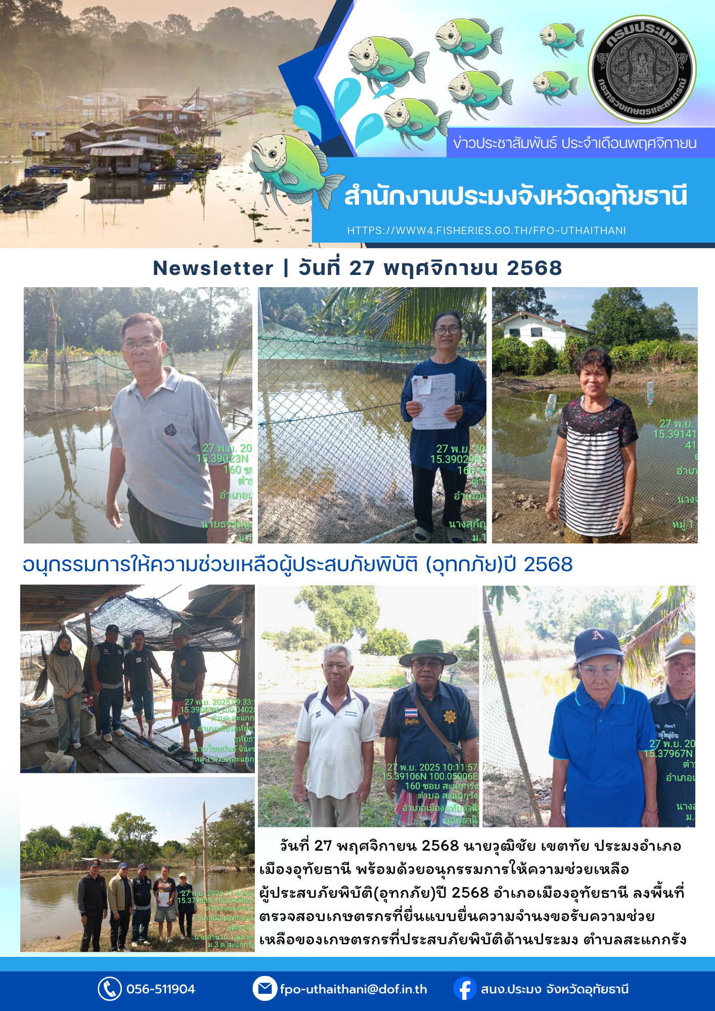 สงวนลิขสิทธิ์ พ.ศ.2568 สำนักงานประมงจังหวัดอุทัยธานี