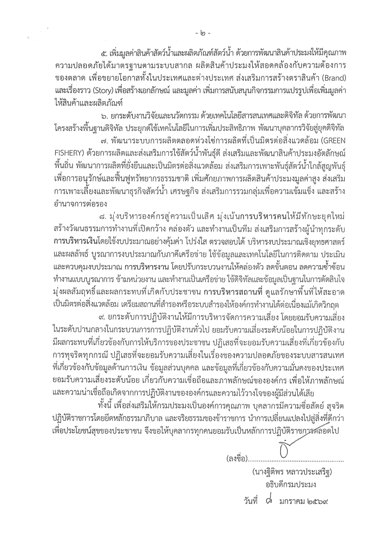 นโยบายการกำกับดูแลองค์การที่ดี กรมประมง ประจำปีงบประมาณ พ.ศ. 2569
