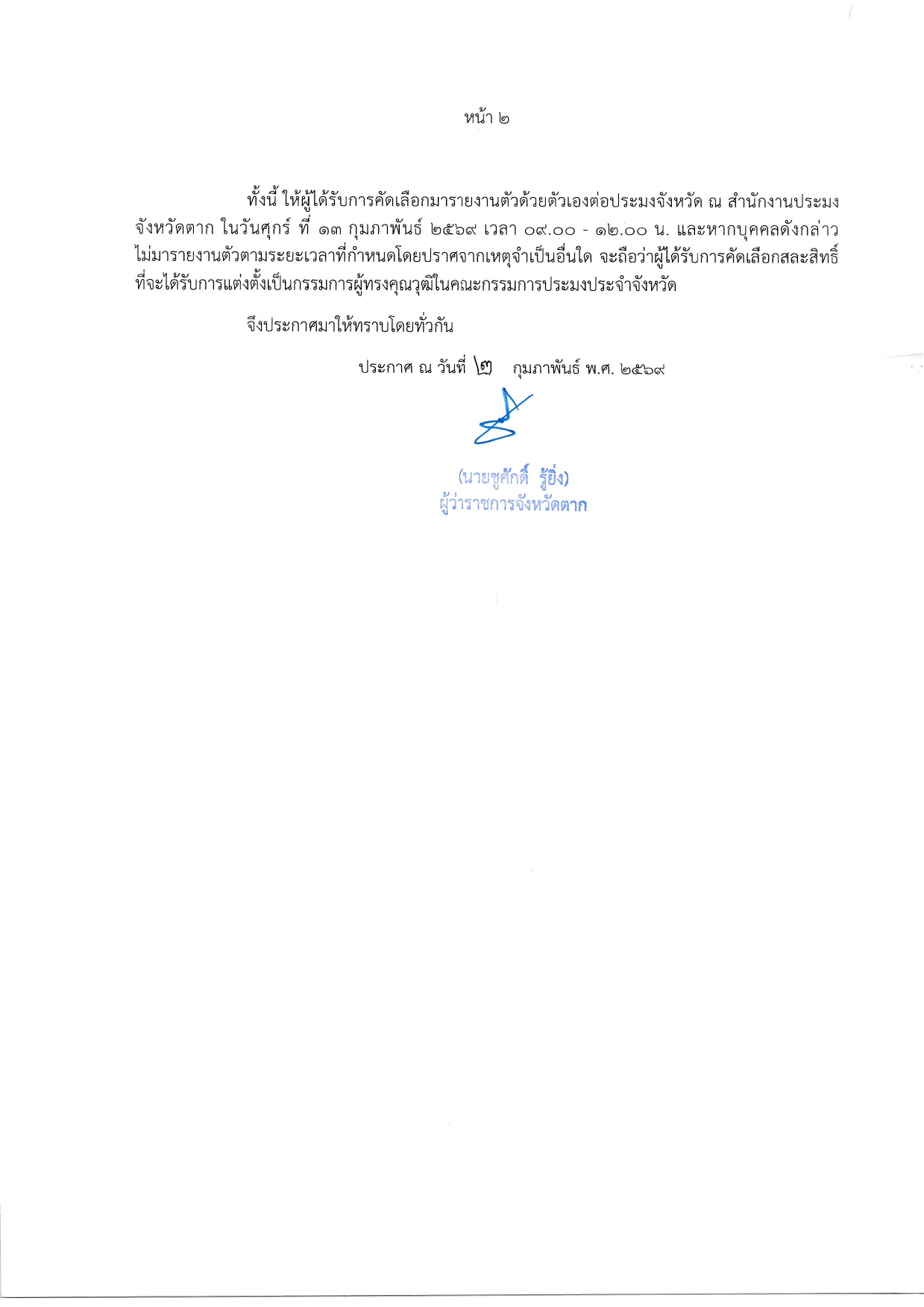 ประกาศจังหวัดตาก เรื่อง ผลการคัดเลือกกรรมการผู้ทรงคุณวุฒิในคณะกรรมการประมงประจำจังหวัด..คลิก