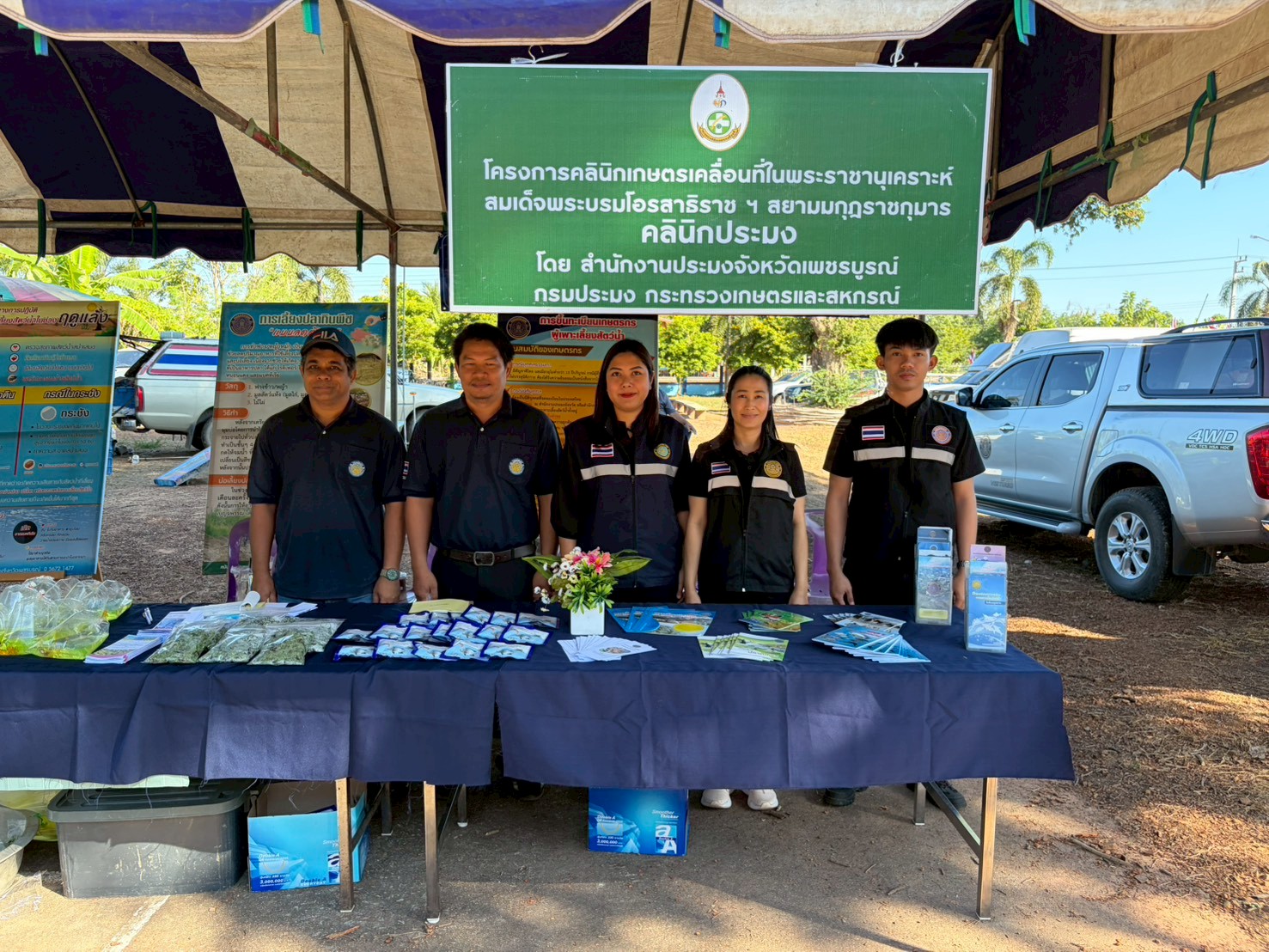 วันศุกร์ที่ 19 ธันวาคม พ.ศ.2568 ว่าที่ร้อยตรี ชัยรัตน์ พุ่มช่วย ประมงจังหวัดเพชรบูรณ์ พร้อมด้วย นางกรรณิกา กังคำ หัวหน้ากลุ่มพัฒนาและส่งเสริมอาชีพการประมง นายวัชริศ ราชวัตร ประมงอำเภอหนองไผ่ และเจ้าหน้าที่สำนักงานประมงจังหวัดเพชรบูรณ์ ร่วมกับเจ้าหน้าที่ของศูนย์วิจัยและพัฒนาการเพาะเลี้ยงสัตว์น้ำจืดเพชรบูรณ์ ออกให้บริการ “คลินิกประมง” ตามโครงการคลินิกเกษตรเคลื่อนที่ในพระราชานุเคราะห์ สมเด็จพระบรมโอรสาธิราชฯ สยามมกุฎราชกุมาร ประจำปีงบประมาณ พ.ศ.2569 ครั้งที่ 1/2569 ณ โรงเรียนบ้านโคกคงสมโภชน์ ตำบลบ้านโภชน์ อำเภอหนองไผ่ จังหวัดเพชรบูรณ์ โดยมี นายกกชัย ฉายรัศมีกุล รองผู้ว่าราชการจังหวัดเพชรบูรณ์ เป็นประธานพิธีเปิดงาน พร้อมมอบพันธุ์ปลาตะเพียนขาว จำนวน 10,000 ตัว ให้กับผู้นำชุมชนนำไปปล่อยในแหล่งน้ำสาธารณะของหมู่บ้าน เพื่อเพิ่มผลผลิตสัตว์น้ำในแหล่งน้ำธรรมชาติ สร้างความอุดมสมบูรณ์ สร้างแหล่งอาหารโปรตีน และสร้างอาชีพเพิ่มรายได้ให้ชุมชน