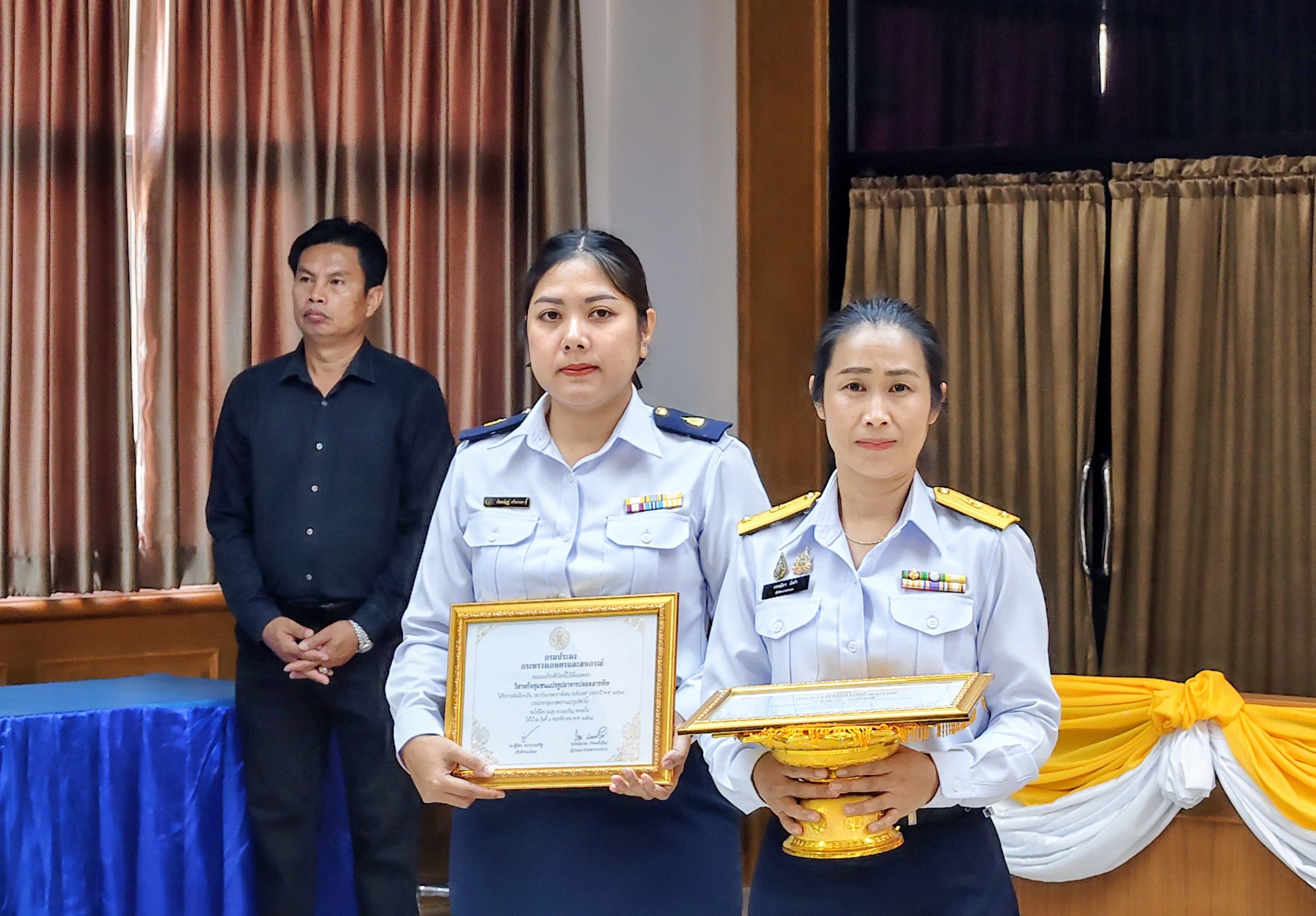วันพฤหัสบดีที่ 29 มกราคม พ.ศ. 2569  ว่าที่ร้อยตรี ชัยรัตน์ พุ่มช่วย ประมงจังหวัดเพชรบูรณ์ ได้นำ นายสมาน วงศ์สวัสดิ์ เกษตรกรดีเด่น ระดับเขต สาขาอาชีพเพาะเลี้ยงสัตว์น้ำจืด และ นางบุญธรรม แสนภูมิ ประธานกลุ่มวิสาหกิจชุมชนแปรรูปอาหารปลอดสารพิษ สถาบันเกษตรกรดีเด่น ระดับเขต ประเภทกลุ่มเกษตรกรแปรรูปสัตว์น้ำ ประจำปี พ.ศ. 2568 ของกรมประมง เข้ารับมอบเกียรติบัตร จาก นายศรัณยู มีทองคำ ผู้ว่าราชการจังหวัดเพชรบูรณ์ ในที่ประชุมคณะกรมการจังหวัดและหัวหน้าส่วนราชการประจำจังหวัดเพชรบูรณ์ ครั้งที่ 1/2569 ณ ห้องเมืองราด ชั้นที่ 5 อาคาร 2 ศาลากลางจังหวัดเพชรบูรณ์ เพื่อเป็นการยกย่องเชิดชูเกียรติ สร้างขวัญกำลังใจให้แก่เกษตรกรและสถาบันเกษตรกร? มีพลังใจในการสร้างผลงานที่เป็นประโยชน์ เป็นต้นแบบในการพัฒนาอาชีพด้านประมงต่อไป