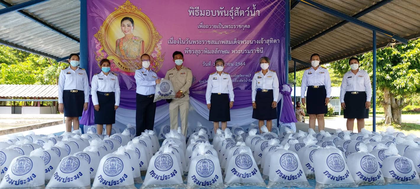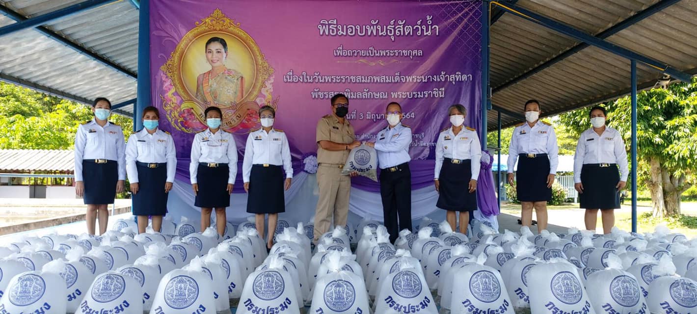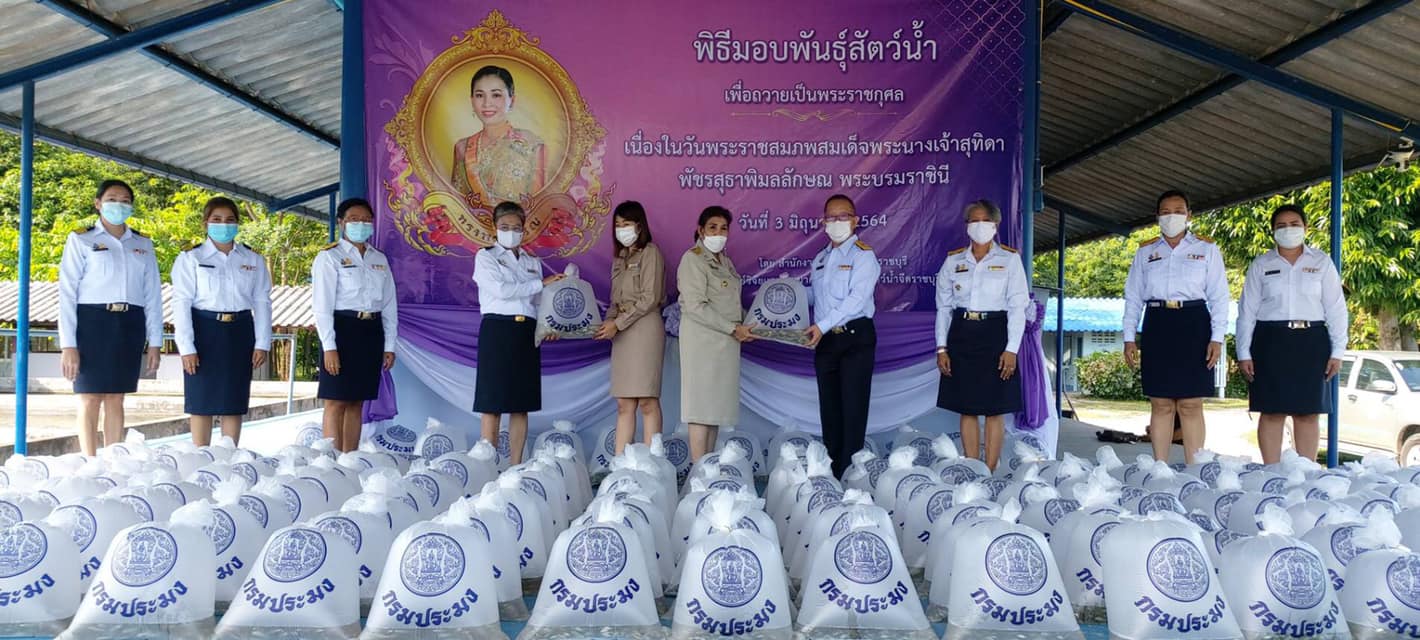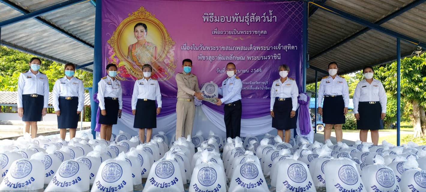 ร่วมจัดพิธีมอบพันธุ์สัตว์น้ำให้กับผู้นำชุมชนนำไปปล่อยในแหล่งน้ำสาธารณะเพื่อถวายเป็นพระราชกุศลเนื่องในวันพระราชสมภพสมเด็จพระนางเจ้าสุทิดา พัชรสุธาพิมลลักษณ พระบรมราชินี