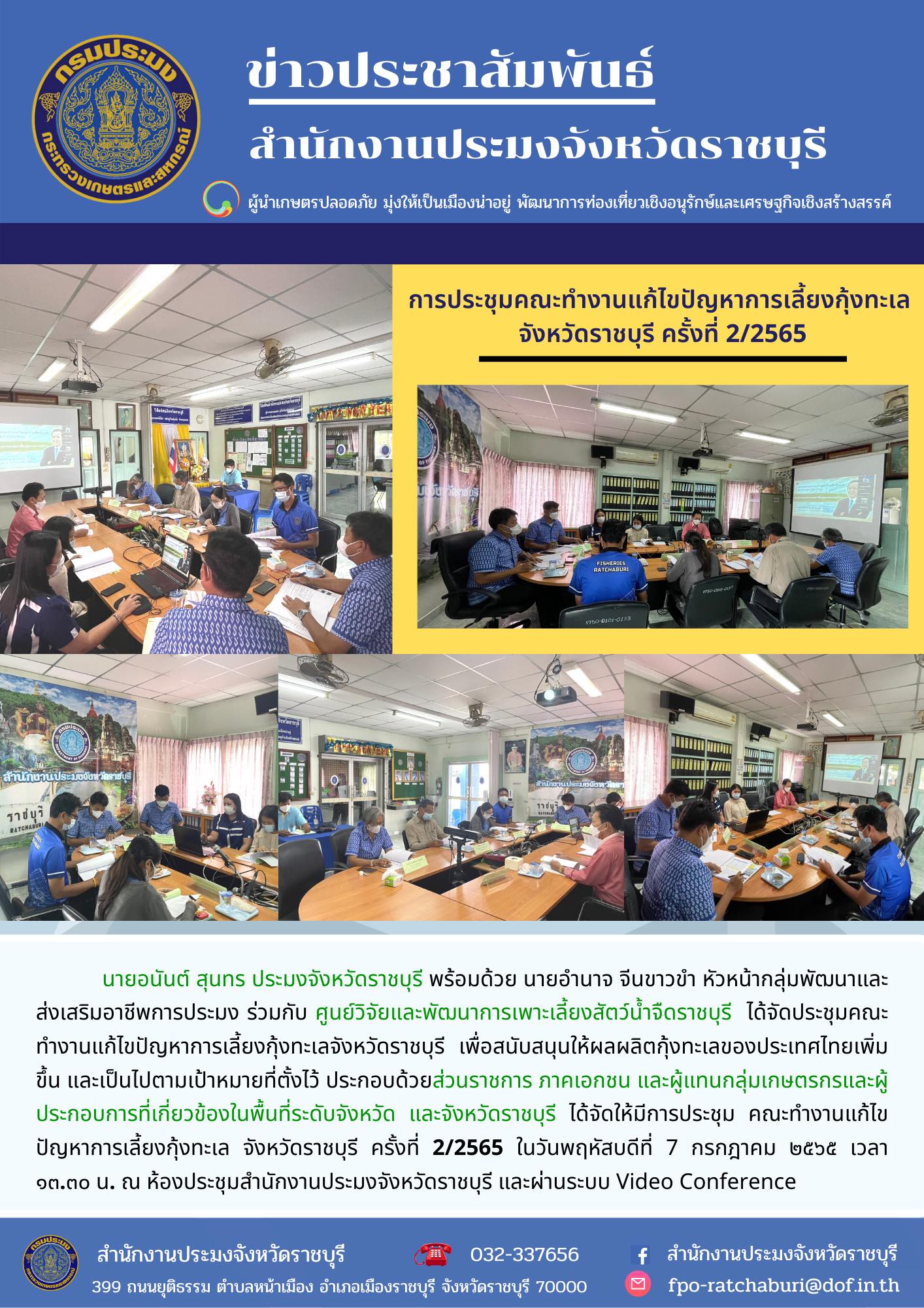 ประชุมคณะทำงานแก้ไขปัญหาการเลี้ยงกุ้งทะเลจังหวัดราชบุรี ครั้งที่ 2/2565