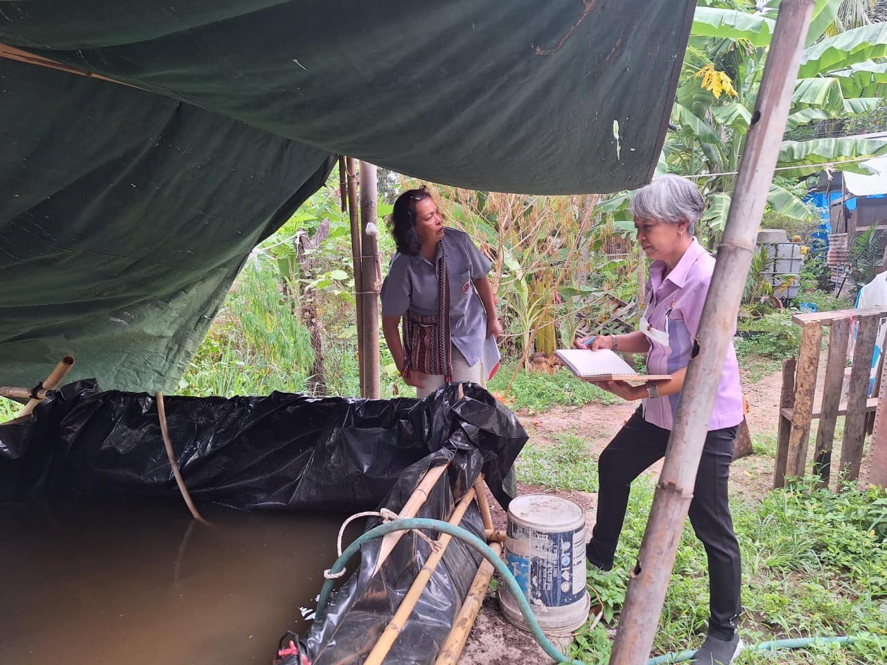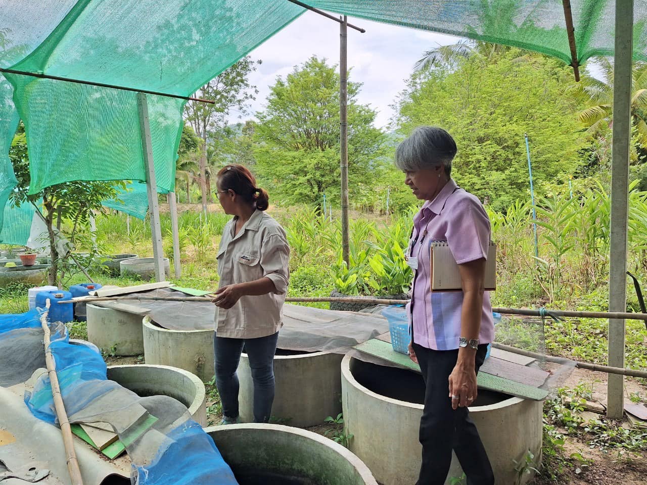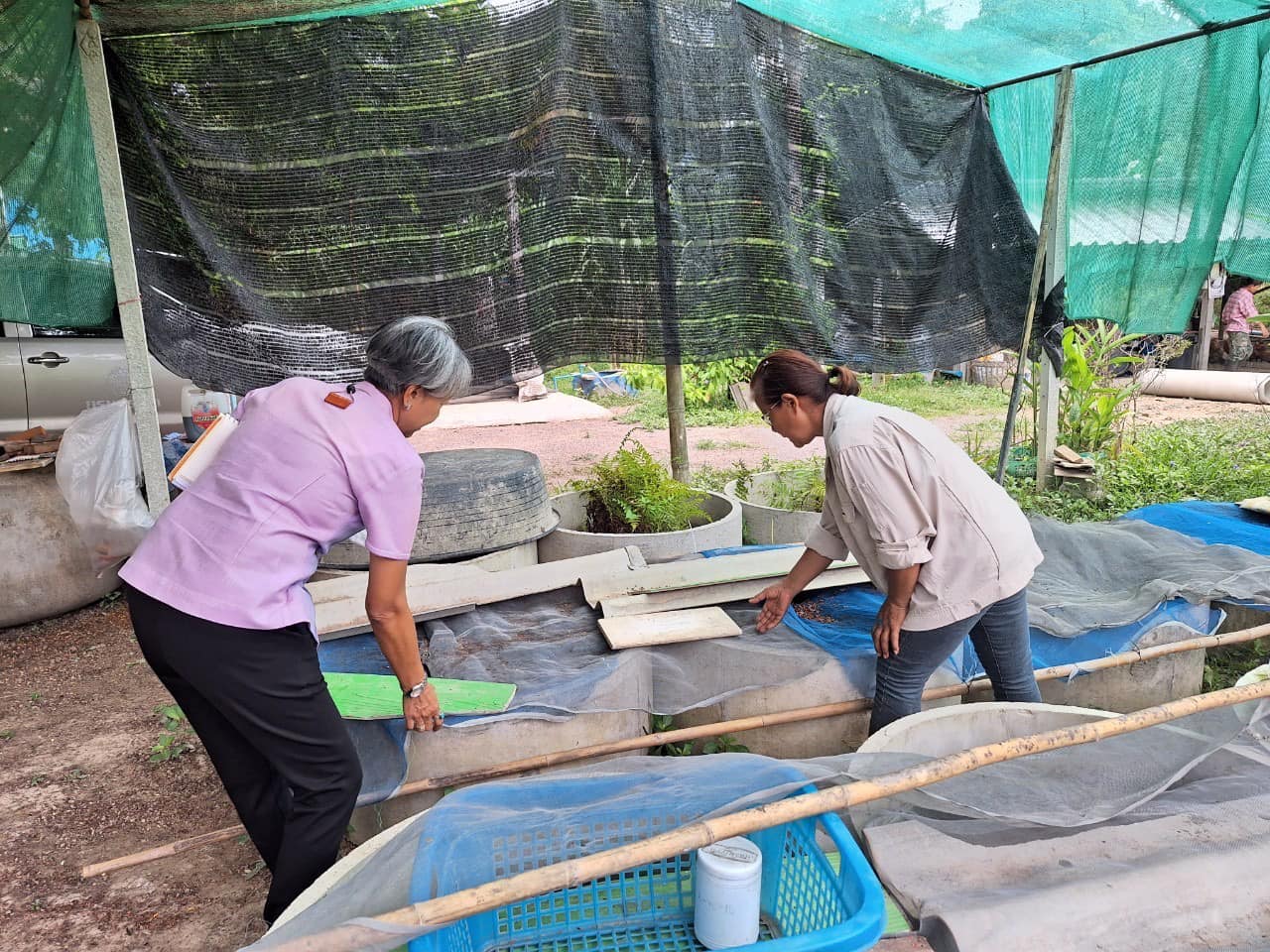 ลงพื้นที่ติดตามงานโครงการส่งเสริมการเลี้ยงปลาในหมู่บ้านตามแนวชายแดนในพระราชดำริจังหวัดราชบุรี ในกิจกรรมการเลี้ยงปลาดุกในบ่อพลาสติก