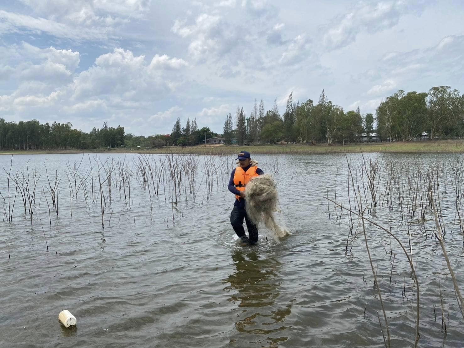 ร่วมกับหน่วยป้องกันและปราบปรามประมงน้ำจืดเขื่อนแก่งกระจาน จังหวัดเพชรบุรี ตรวจปราบปรามการทำการประมงผิดกฏหมายตามประกาศกรมประมง "ห้ามจับสัตว์น้ำช่วงฤดูสัตว์น้ำมีไข่ วางไข่ และเลี้ยงลูกวัยอ่อน
