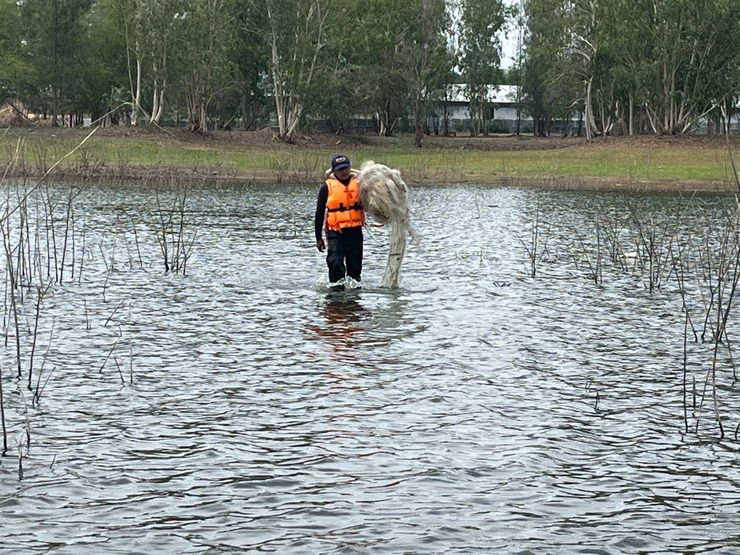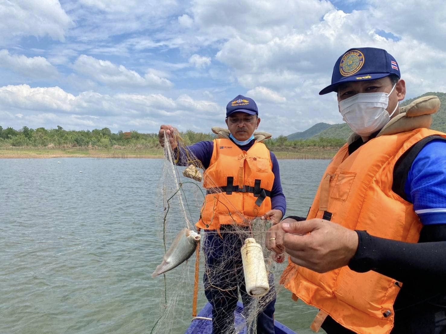 ร่วมกับหน่วยป้องกันและปราบปรามประมงน้ำจืดเขื่อนแก่งกระจาน จังหวัดเพชรบุรี ตรวจปราบปรามการทำการประมงผิดกฏหมายตามประกาศกรมประมง