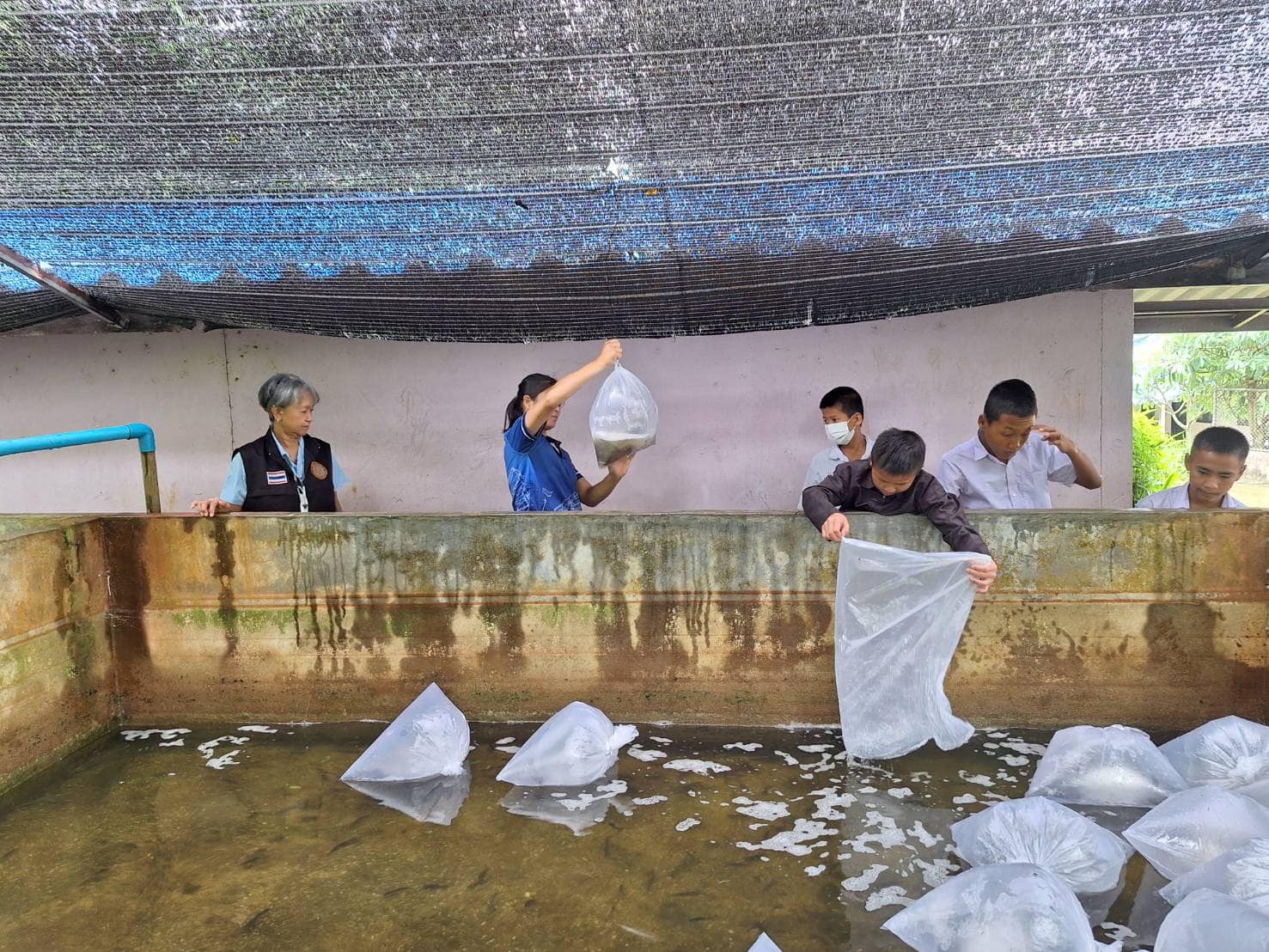 2.โรงเรียนตำรวจตะเวนชายแดนบ้านถ้ำหิน หมู่ที่ 5 หมู่บ้านถ้ำหิน ตำบลสวนผึ้ง อำเภอสวนผึ้ง จังหวัดราชบุรี สนับสนุนพันธุ์ปลาสวาย จำนวน 1,200 ตัว