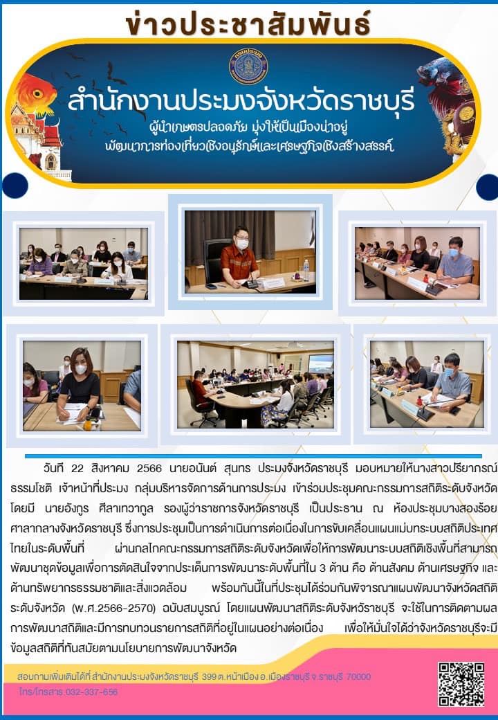 วันที 22 สิงหาคม 2566 นายอนันต์ สุนทร ประมงจังหวัดราชบุรี มอบหมายให้ นางสาวปรียาภรณ์ ธรรมโชติ เจ้าหน้าที่ประมง กลุ่มบริหารจัดการด้านการประมง เข้าร่วมประชุมคณะกรรมการสถิติระดับจังหวัด โดยมี นายอังกูร ศีลาเทวากูล รองผู้ว่าราชการจังหวัดราชบุรี เป็นประธาน ณ ห้องประชุมบางสองร้อย ศาลากลางจังหวัดราชบุรี ซึ่งการประชุมเป็นการดำเนินการต่อเนื่องในการขับเคลื่อนแผนแม่บทระบบสถิติประเทศไทยในระดับพื้นที่ ผ่านกลไกคณะกรรมการสถิติระดับจังหวัดเพื่อให้การพัฒนาระบบสถิติเชิงพื้นที่สามารถพัฒนาชุดข้อมูลเพื่อการตัดสินใจจากประเด็นการพัฒนาระดับพื้นที่ใน 3 ด้าน คือ ด้านสังคม ด้านเศรษฐกิจ และด้านทรัพยากรธรรมชาติและสิ่งแวดล้อมพร้อมกันนี้ในที่ประชุมได้ร่วมกันพิจารณาแผนพัฒนาจังหวัดสถิติระดับจังหวัด (พ.ศ.2566-2570) ฉบับสมบูรณ์ โดยแผนพัฒนาสถิติระดับจังหวัดราชบุรี จะใช้ในการติดตามผลการพัฒนาสถิติและมีการทบทวนรายการสถิติที่อยู่ในแผนอย่างต่อเนื่อง เพื่อให้มั่นใจได้ว่าจังหวัดราชบุรีจะมีข้อมูลสถิติที่ทันสมัยตามนโยบายการพัฒนาจังหวัด