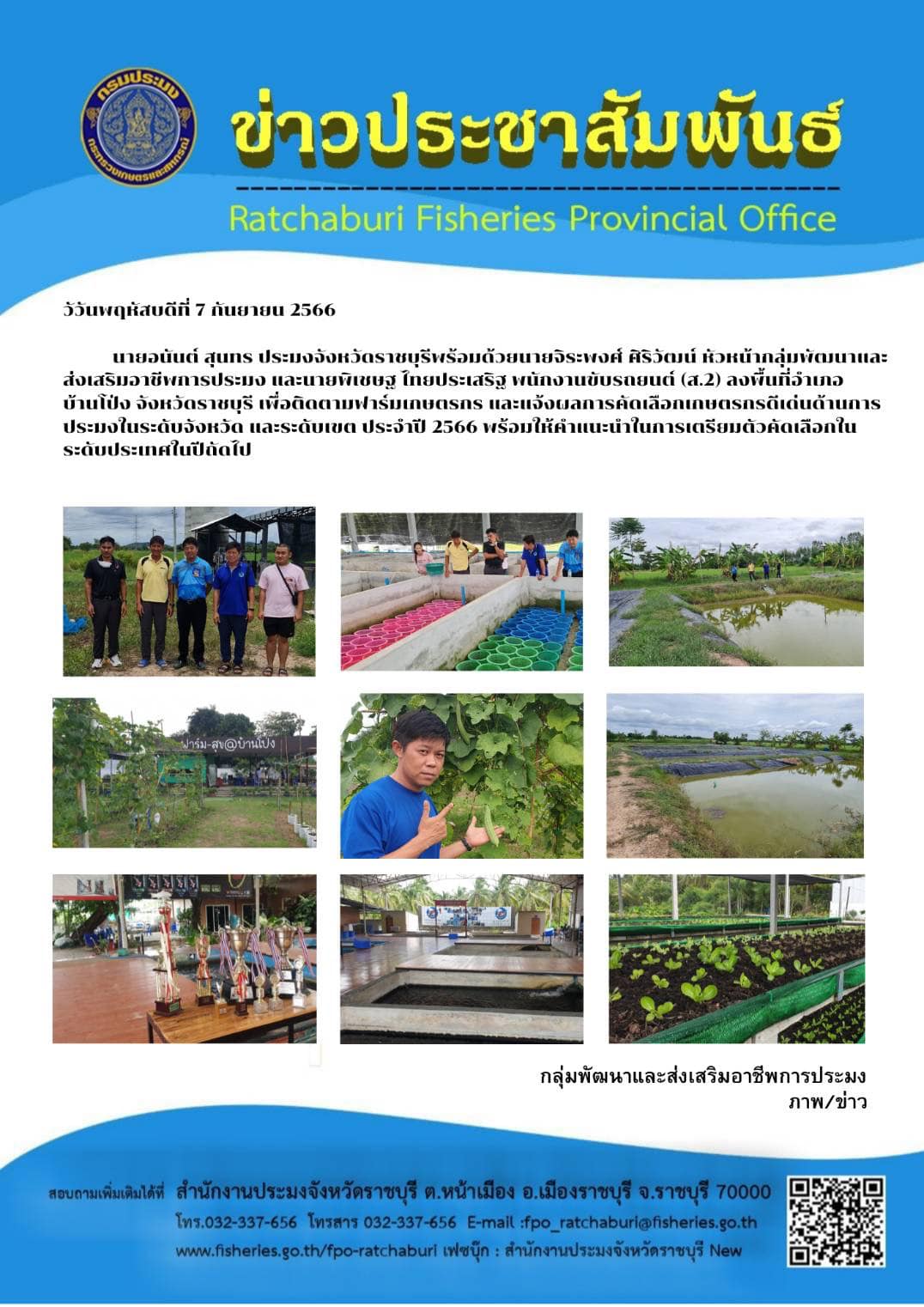ลงพื้นที่อำเภอบ้านโป่ง เพื่อติดตามฟาร์มเกษตรกร พร้อมแจ้งผลการคัดเลือกเกษตรกรดีเด่นด้านการประมงในระดับจังหวัด และระดับเขต ประจำปี 2566..คลิก