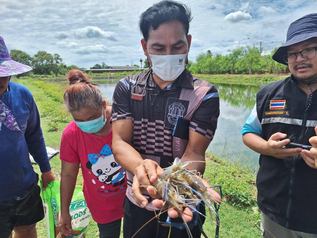 ลงพื้นที่ติดตามความก้าวหน้าผลการดำเนินโครงการระบบส่งเสริมเกษตรแบบแปลงใหญ่แปลงกุ้งก้ามกรามดอนเข้ารีดร่วมใจ