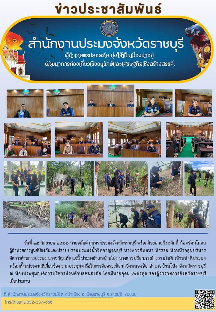 วันที่ 15 กันยายน 2566 นายอนันต์ สุนทร ประมงจังหวัดราชบุรี พร้อมด้วย นายวีระศักดิ์ ก้องรัตนโกศล ผู้อำนวยการศูนย์ป้องกันและปราบปรามประมงน้ำจืดกาญจนบุรี นางสาวจินตนา นิธรรม หัวหน้ากลุ่มบริหารจัดการด้านการประมง นางขวัญฤทัย แซ่ลี้ ประมงอำเภอบ้านโป่ง นางสาวปรียาภรณ์ ธรรมโชติ เจ้าหน้าที่ประมง พร้อมทั้งหน่วยงานที่เกี่ยวข้อง ร่วมประชุมหารือในการจับจระเข้จากบึงหนองอ้อ อำเภอบ้านโป่ง จังหวัดราชบุรี ณ ห้องประชุมองค์การบริหารส่วนตำบลหนองอ้อ โดยมีนายอุดม เพชรคุต รองผู้ว่าราชการจังหวัดราชบุรี เป็นประธาน