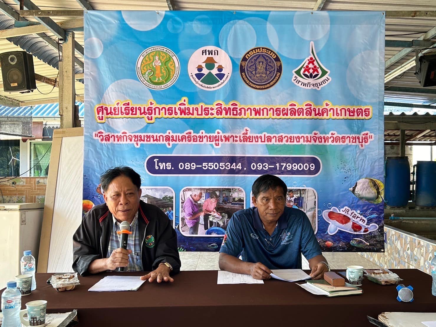วันที่ 8 ธันวาคม 2566 ว่าที่ร้อยตรี มารุต นุตตะโร ประมงอำเภอเมืองราชบุรี เข้าร่วมประชุมเชื่อมโยงการดำเนินงานคณะกรรมการเครือข่าย ศูนย์เรียนรู้การเพิ่มประสิทธิภาพการผลิตสินค้าเกษตร (ศพก.) และแปลงใหญ่ ครั้งที่ 1/2567 ภายใต้โครงการระบบส่งเสริมเกษตรแบบแปลงใหญ่ ปี 2567 โดยมีวัตถุประสงค์ เพื่อทบทวนผลการดำเนินงาน วิเคราะห์ปัญหาอุปสรรค และร่วมกันกำหนดแนวทางการขับเคลื่อนการพัฒนาศูนย์เรียนรู้การเพิ่มประสิทธิภาพการผลิตสินค้าเกษตร (ศพก.) และแปลงใหญ่อำเภอเมืองราชบุรี ให้เกิดประสิทธิภาพ ณ เครือข่าย ศูนย์เรียนรู้การเพิ่ประสิทธิภาพสินค้าเกษตร หมู่ที่ 3 ตำบลท่าราบ อำเภอเมืองราชบุรี จังหวัดราชบุรี