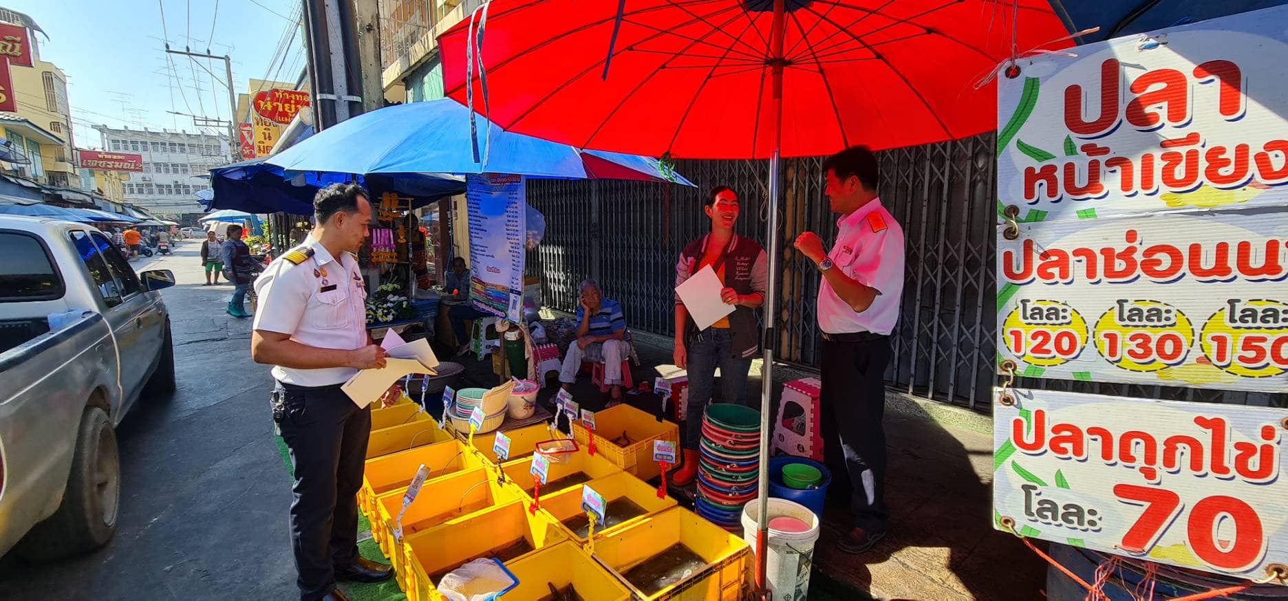 ร่วมลงพื้นที่บริเวณตลาดเทศบาลเมืองราชบุรี เพื่อประชาสัมพันธ์ เรื่องการปล่อยพันธุ์สัตว์น้ำอย่างไรให้ถูกต้อง เพื่อทำความเข้าใจกับประชาชนบริเวณโดยรอบ