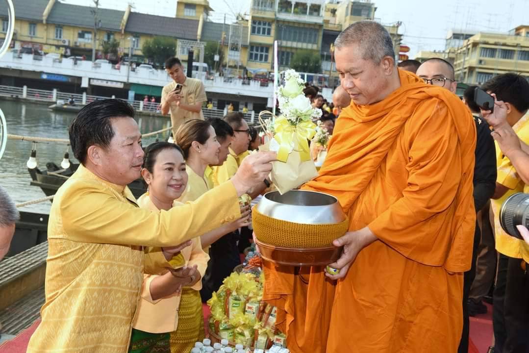 ร่วมพิธีทำบุญตักบาตรกลางน้ำ เสริมสิริมงคลเมืองราชบุรี สายนทีแม่กลอง