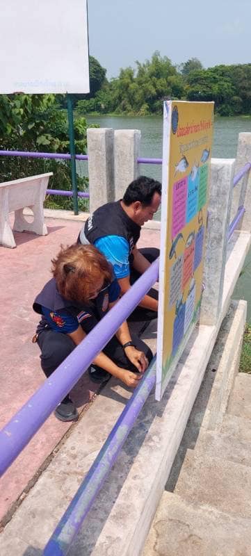 ลงพื้นที่ติดตั้งป้ายประชาสัมพันธ์เรื่องการปล่อยสัตว์น้ำอย่างไรให้ถูกวิธี