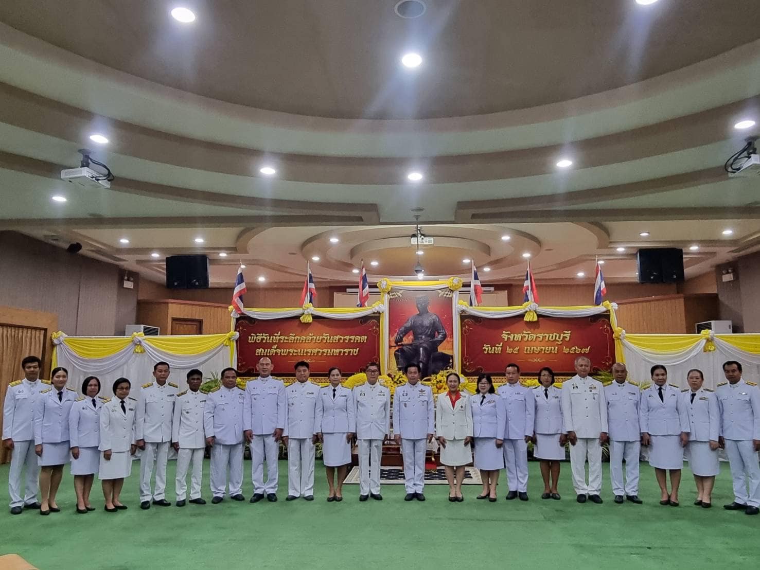 วันที่ 25 เมษายน 2567 นายอนันต์ สุนทร ประมงจังหวัดราชบุรี พร้อมด้วย นางสาวจันทร์ทิพย์ บรรลือเดช นักวิชาการประมงชำนาญการ และนางสาวกานต์ชนก แสงประทุม นักวิชาการประมง เข้าร่วมพิธีวันที่ระลึกคล้ายวันสวรรคตสมเด็จพระนเรศวรมหาราช โดย ร่วมวางพวงมาลาถวายราชสักการะ หน้าพระบรมสาทิสลักษณ์ และกล่าวถวายราชสดุดี โดยมีนายเกียรติศักดิ์ ตรงศิริ ผู้ว่าราชการจังหวัดราชบุรี เป็นประธานในพิธี เพื่อเป็นการรำลึกถึงพระมหากรุณาธิคุณที่ทรงกอบกู้อิสรภาพของไทยและทำนุบำรุงบ้านเมืองเจริญรุ่งเรืองทั้งด้านเศรษฐกิจ สังคม ศิลปวัฒนธรรม ตลอดจนปกปักรักษาเอกราชของชาติ ในพิธีมีนางพรศรี ตรงศิริ นายกเหล่ากาชาดจังหวัดราชบุรี รองผู้ว่าราชการจังหวัดราชบุรี ส่วนราชการ และเจ้าหน้าที่ ร่วมประกอบพิธี ณ ห้องประชุมกัลปพฤกษ์ อาคารราชบุรีเกมส์ ศาลากลางจังหวัดราชบุรี