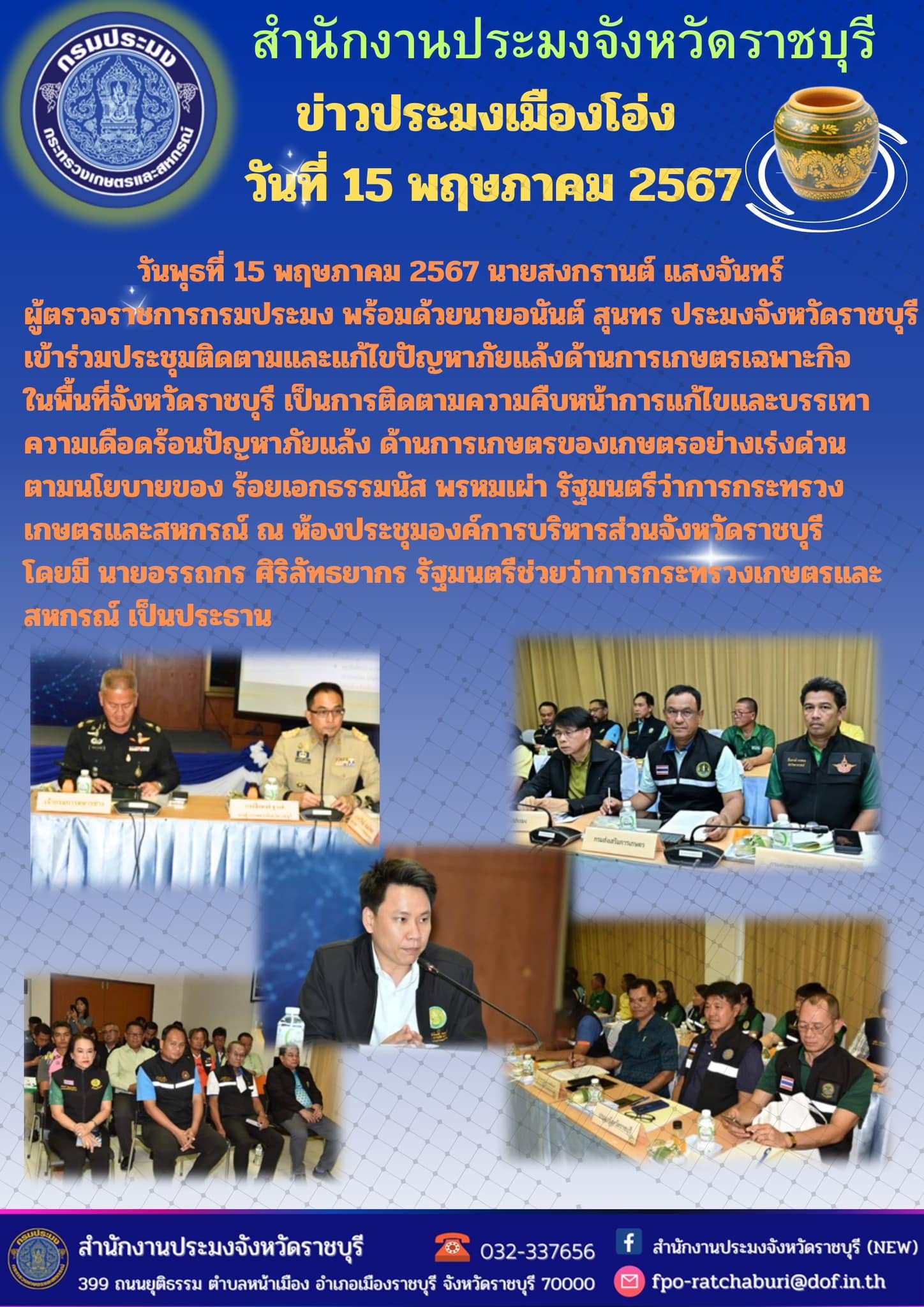 เข้าร่วมประชุมติดตามและแก้ไขปัญหาภัยแล้งด้านการเกษตรเฉพาะกิจ ในพื้นที่จังหวัดราชบุรี..คลิก