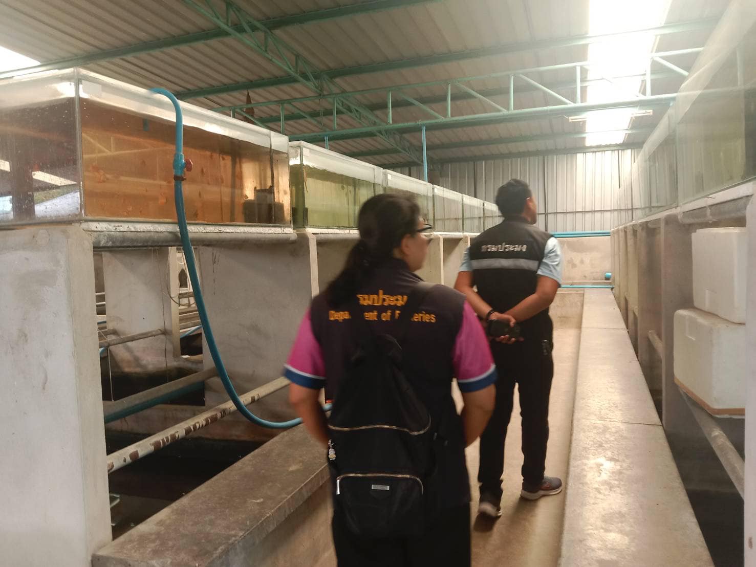 ลงพื้นที่เพื่อดำเนินการตรวจประเมินเพื่อขอหนังสือรับรองสถานที่ทำการเพาะเลี้ยงสัตว์น้ำชนิดที่ใกล้สูญพันธุ์จากธรรมชาติเพื่อการส่งออก ตามมาตรา 65 แห่งพระราชกำหนดการประมง 2558 และที่แก้ไขเพิ่มเติม