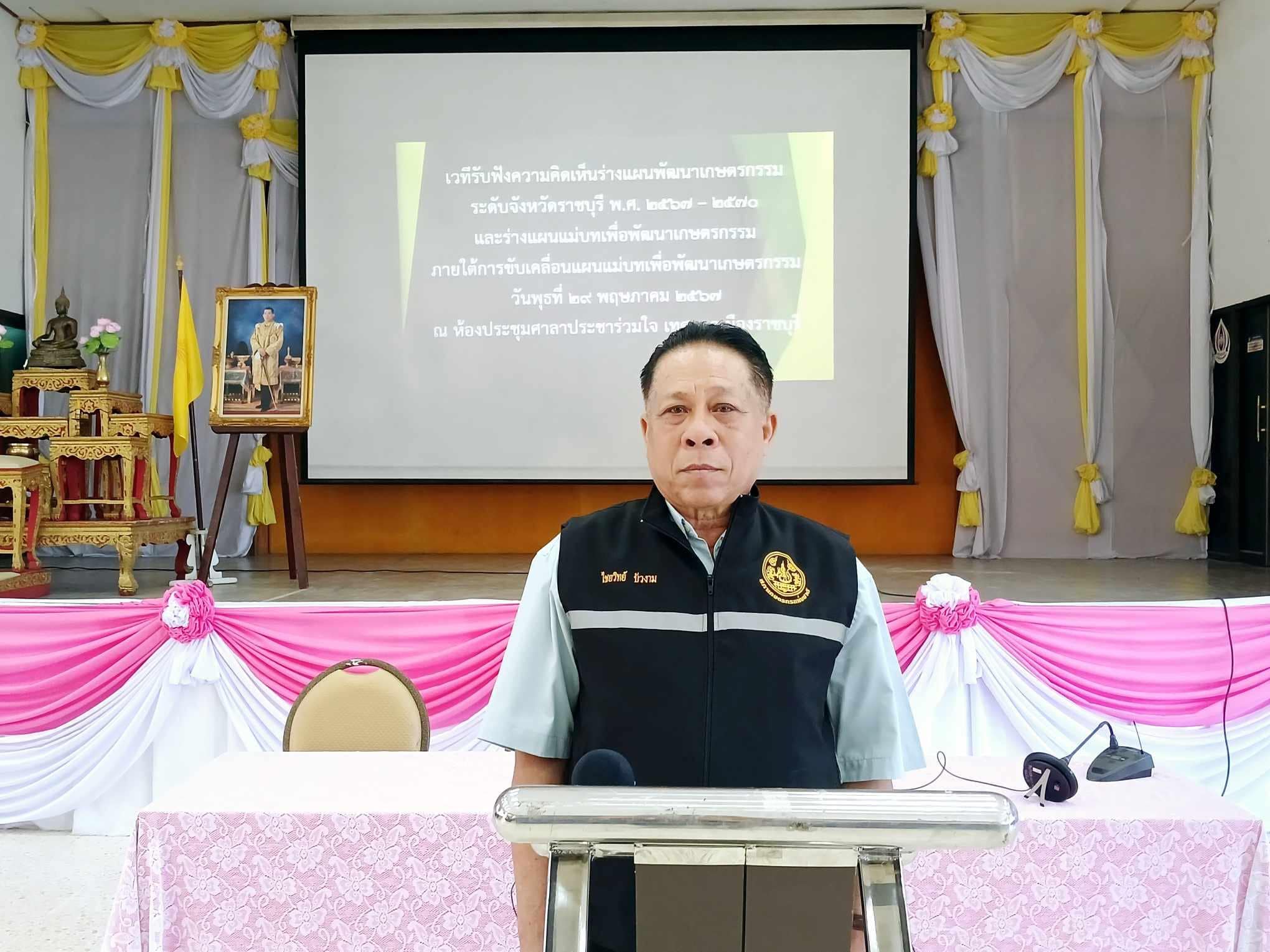 เข้าร่วมโครงการรับฟังความคิดเห็นร่างแผนพัฒนาเกษตรกรรมระดับจังหวัดราชบุรี พ.ศ. 2567 - 2570 และร่างแผนแม่บทเพื่อพัฒนาเกษตรกรรม ภายใต้การขับเคลื่อนแผนแม่บท เพื่อพัฒนาเกษตรกรรม