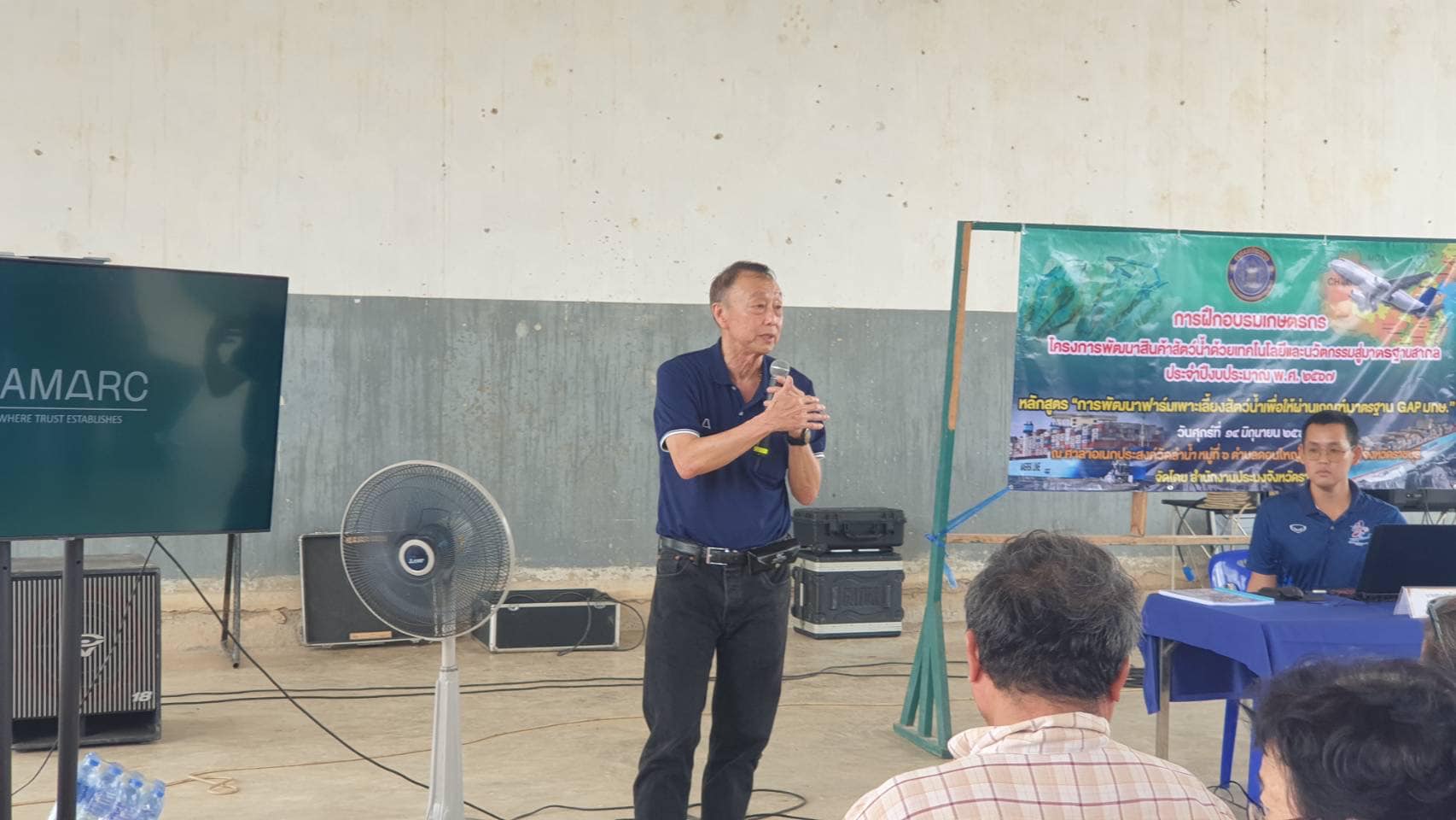จัดฝึกอบรมเกษตรกร ตามโครงการพัฒนาสินค้าสัตว์น้ำด้วยเทคโนโลยี ด้วยนวัตกรรมสู่มาตรฐานสากล ตามแผนพัฒนากลุ่มจังหวัดภาคกลางตอนล่าง 1 หลักสูตร “การพัฒนาฟาร์มเพาะเลี้ยงสัตว์น้ำ เพื่อให้ ผ่านเกณฑ์มาตรฐาน GAP มกษ.”