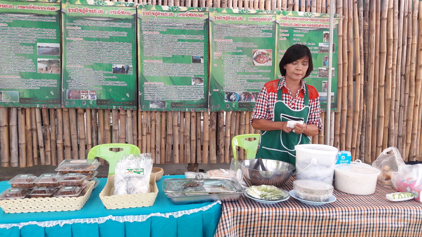 ร่วมสาธิตการแปรรูปสัตว์น้ำและถ่ายทอดความรู้ให้กับเกษตรกรที่เข้าร่วมงานวันถ่ายทอดเทคโนโลยีเพื่อเริ่มฤดูการผลิตใหม่ (Field Day)